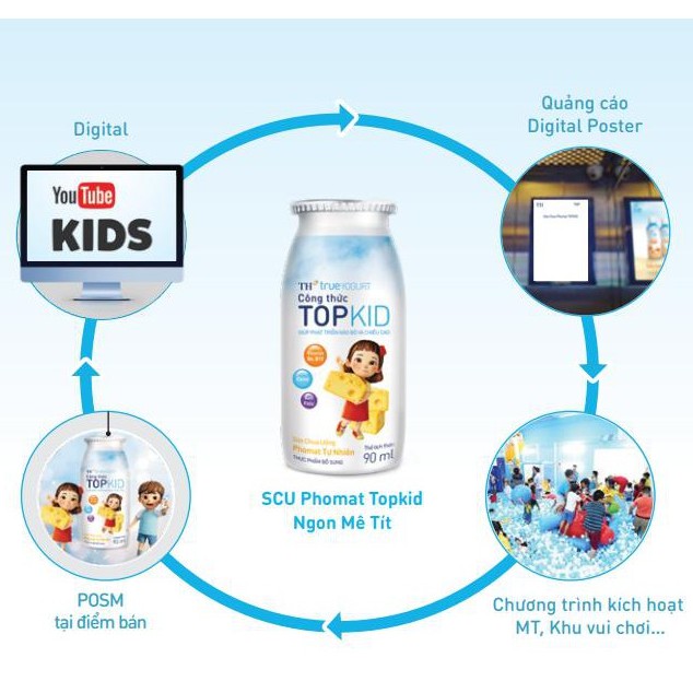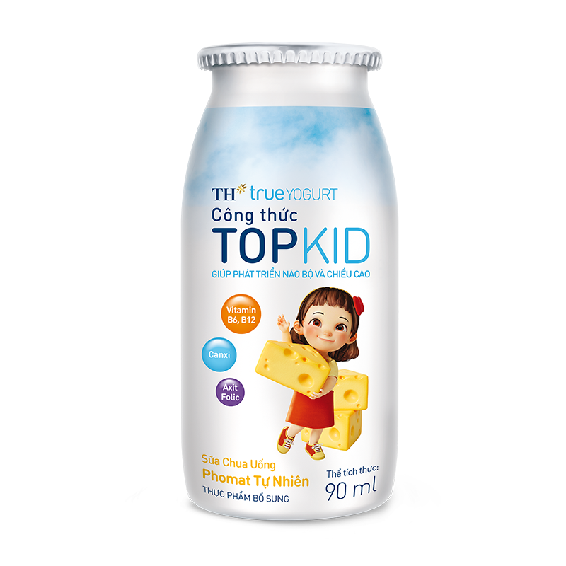 TH True Milk Topkid là một trong những dòng sữa chua được nhiều bà mẹ lựa chọn cho con sử dụng trong quá trình ăn dặm bởi hương vị thơm ngon và những lợi ích của nó mang lại. Tiếp nối thành công của bộ sản phẩm TH TOPKID giúp trẻ khoẻ mạnh tự nhiên nhận được sự tin yêu của đông đảo người tiêu dùng: Sữa Tươi Tiệt Trùng, Sữa Chua Ăn, Sữa Chua Uống Tiệt Trùng, TH tự hào ra mắt dòng sản phẩm hoàn toàn mới: Sữa Chua Uống Phomat Tự Nhiên TH true YOGURT Công Thức TOPKID.