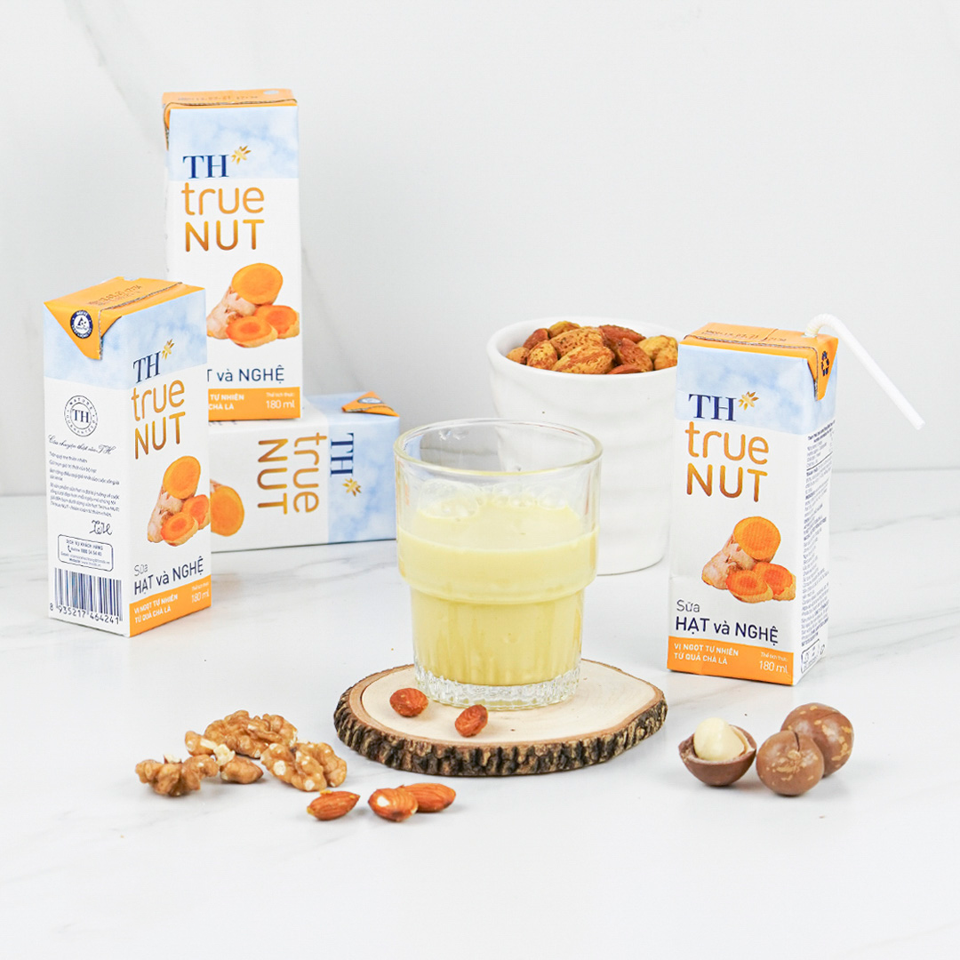 Sữa Hạt và Nghệ TH True Nut 180ml là sự kết hợp sáng tạo mang tính khoa học về dinh dưỡng giữa hạt óc chó, hạt mắc ca, chiết xuất nghệ, sữa tươi sạch của trang trại TH và vị ngọt tự nhiên từ quả chà là, tốt hơn cho sức khỏe cả gia đình.