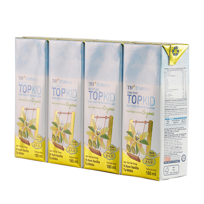 Sữa tươi tiệt trùng TH true milk công thức Topkid hoàn toàn từ sữa tươi organic tự hào là sữa tươi công thức đầu tiên và duy nhất trên thị trường, là sản phẩm đặt nền móng cho phân khúc sữa tươi công thức dành cho trẻ tại Việt Nam và tiên phong định hướng người tiêu dùng sử dụng những dòng sản phẩm sữa công thức làm từ sữa tươi sạch.