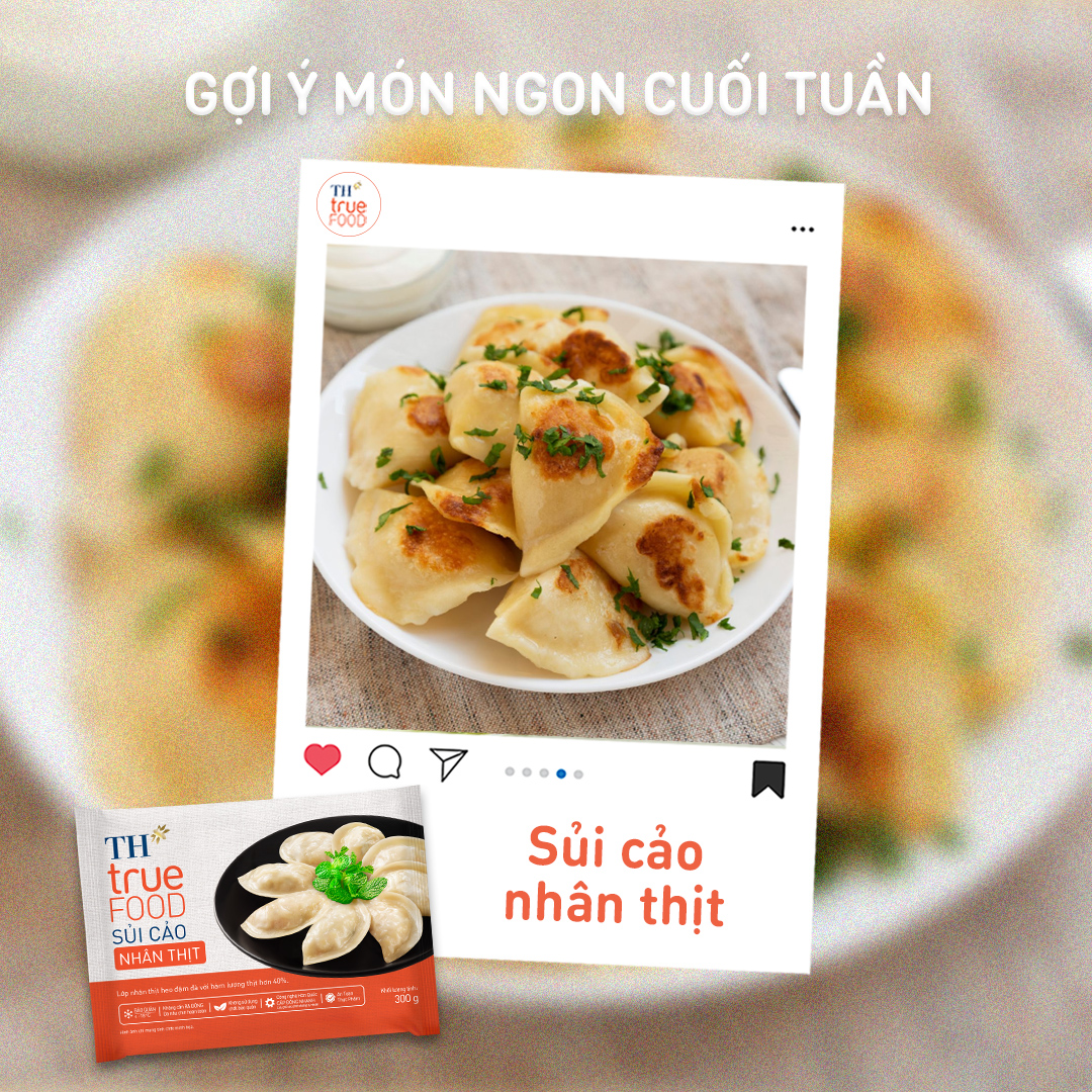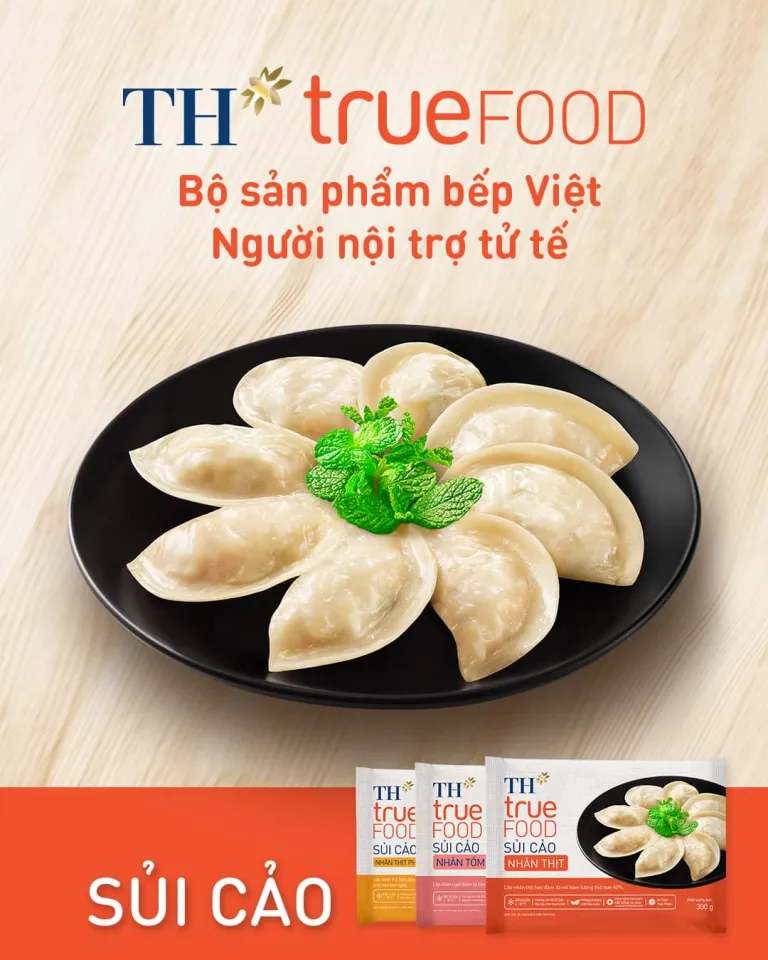 Với ẩm thực Á Đông, sủi cảo là món ăn quen thuộc. Chiều lòng các tín đồ ẩm thực, bộ sản phẩm thực phẩm chế biến TH true FOOD - Bếp Việt - Người nội trợ tử tế đã mang đến 3 lựa chọn hấp dẫn cho món sủi cảo. Đầu tiên là sủi cảo nhân thịt đậm đà với hàm lượng thịt heo hơn 40%, kế đó là hai hương vị sáng tạo là nhân tôm kết hợp cùng thịt, rau củ tươi, và nhân thịt kết hợp phô mai độc đáo - kết hợp hài hòa giữa hương vị béo ngậy của phô mai và độ thơm ngon của thịt.