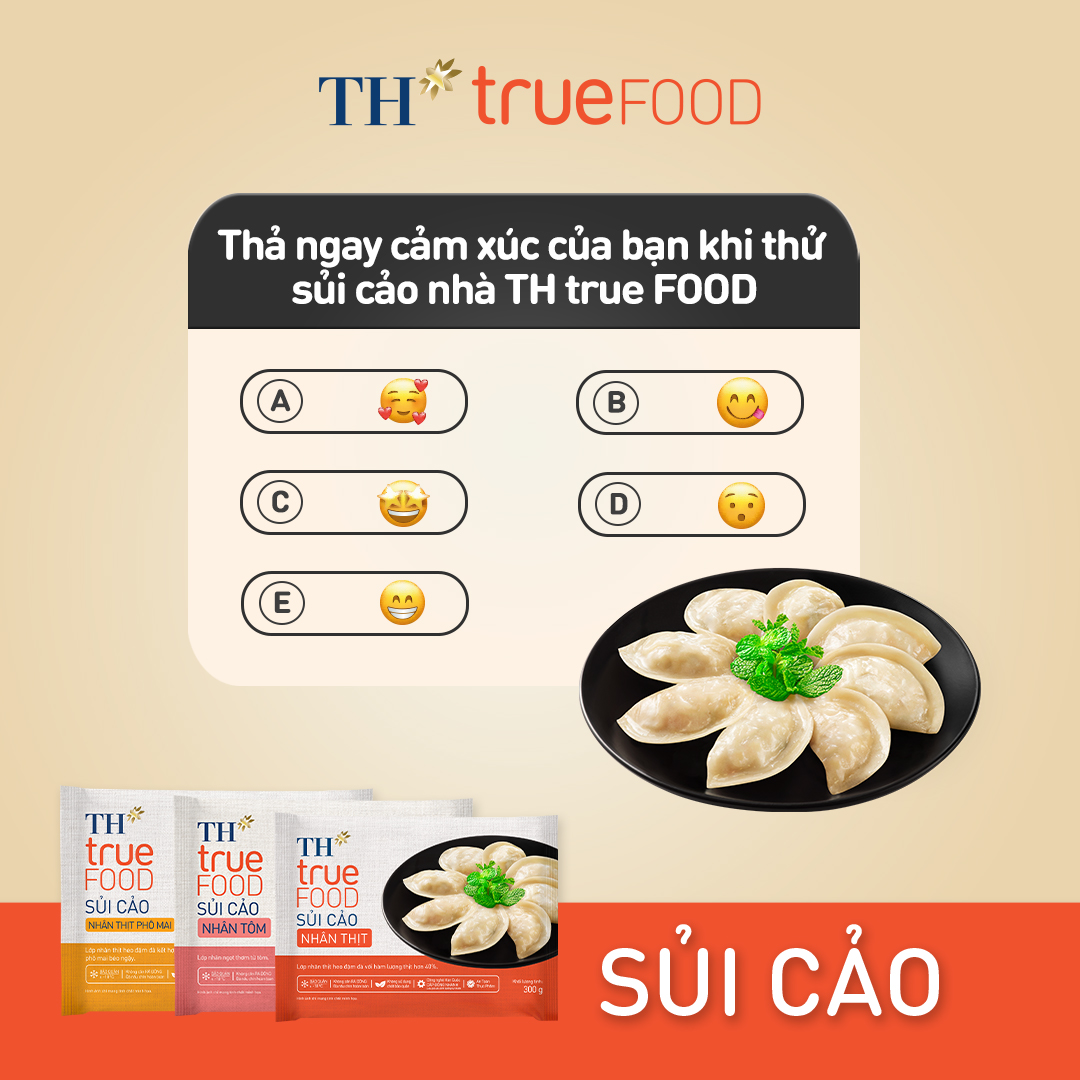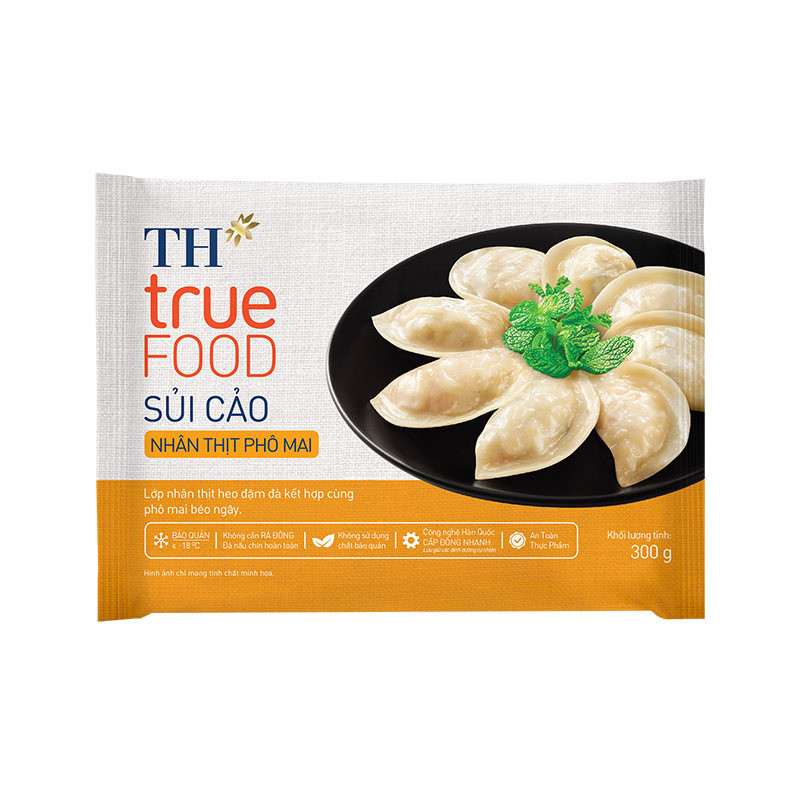 Khi chọn mua các sản phẩm cấp đông, nhiều người tiêu dùng e ngại món ăn sẽ mất đi hương vị tươi ngon tự nhiên và chất lượng dinh dưỡng vốn có. Nhưng với sủi cảo TH true FOOD, nhờ được sản xuất với công nghệ cấp đông nhanh IQF hiện đại hàng đầu thế giới, toàn bộ các nguyên liệu tươi ngon, tuyển chọn khắt kheo theo tiêu bộ tiêu chí, khi đến tay người tiêu dùng, sản phẩm vẫn lưu giữ được độ tươi ngon và dinh dưỡng tự nhiên, mang đến trải nghiệm ẩm thực chất lượng với lớp vỏ mỏng và phần nhân đầy đặn, đậm đà, với 3 lựa chọn nhân thịt, nhân tôm và nhân thịt phô mai hấp dẫn.