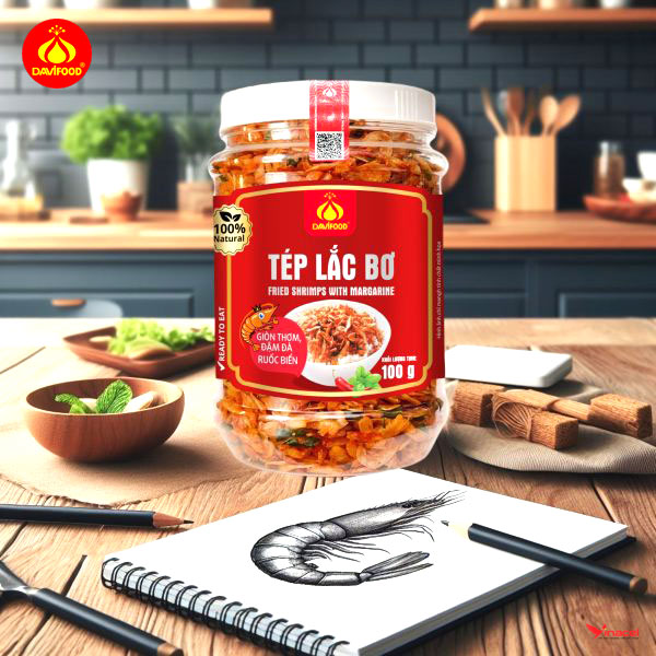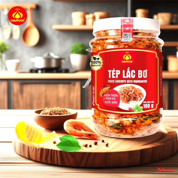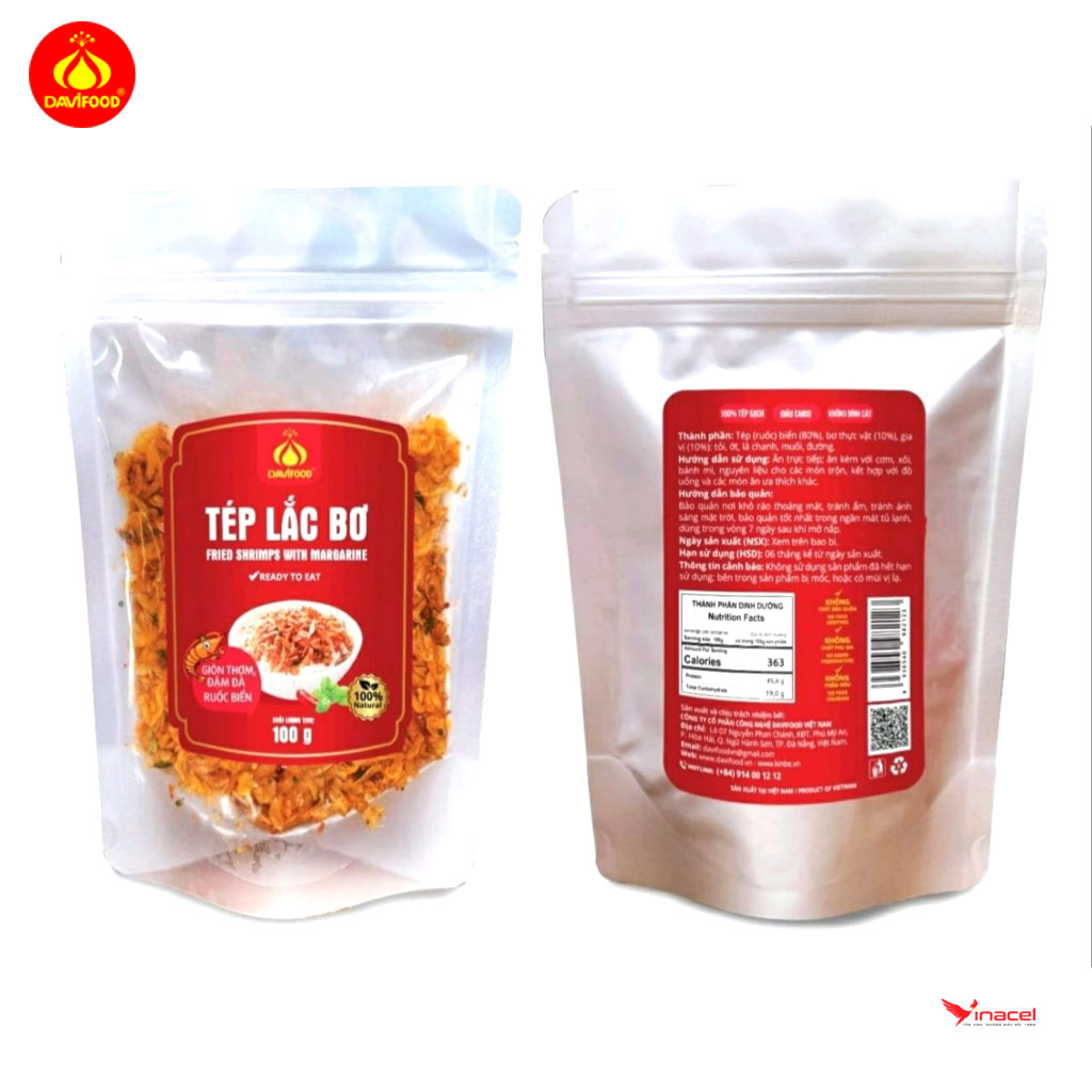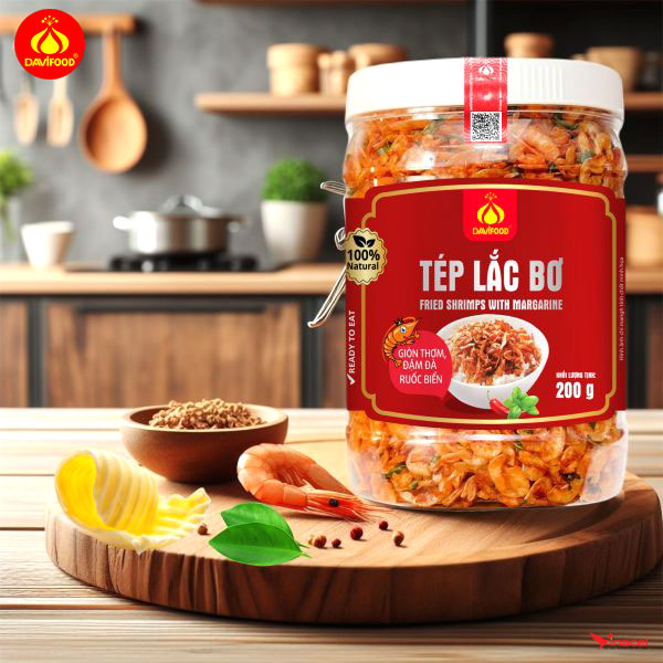 Tép lắc bơ là sản phẩm của Công ty Cổ phần Công nghệ Davifood Việt Nam nghiên cứu và phát triển; được làm từ 100% tép biển sạch, kết hợp với các loại gia vị hoàn toàn tự nhiên được lựa chọn kỹ lưỡng, trên dây chuyền thiết bị công nghệ hiện đại khép kín, theo tiêu chuẩn HACCP, giữ nguyên hương vị và giá trị dinh dưỡng, an toàn vệ sinh thực phẩm.