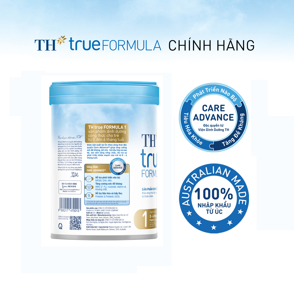 Sản phẩm dinh dưỡng TH true FORMULA được sản xuất tại Úc theo công thức Care Advance độc quyền phát triển bởi Viện Dinh Dưỡng TH cung cấp DINH DƯỠNG TOÀN DIỆN cho trẻ phát triển qua từng giai đoạn.