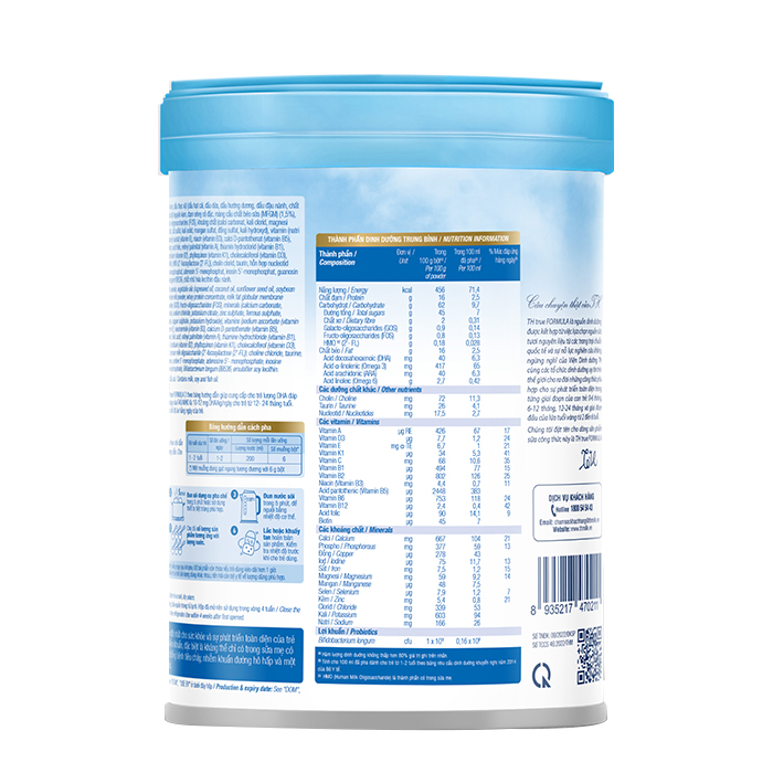 • Vitamin và khoáng chất: Sữa bột TH True Formula cung cấp đầy đủ các vitamin và khoáng chất cần thiết cho sự phát triển của trẻ, bao gồm vitamin A, C, D, E, K, các vitamin nhóm B, sắt, kẽm, đồng, iot...