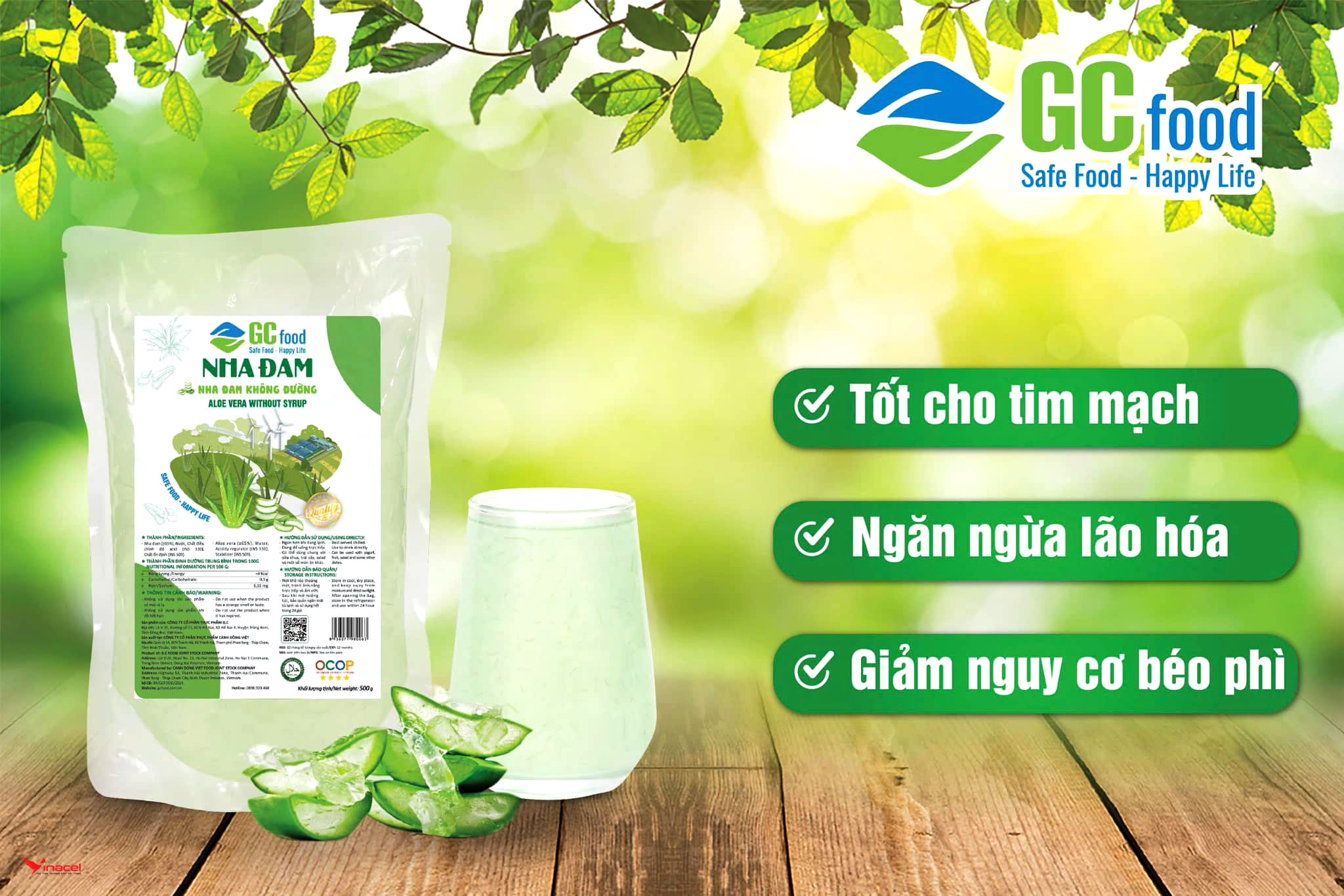 • Nha đam (50%), đường (12%), chất điều chỉnh độ Acid (330), hương dứa tổng hợp.