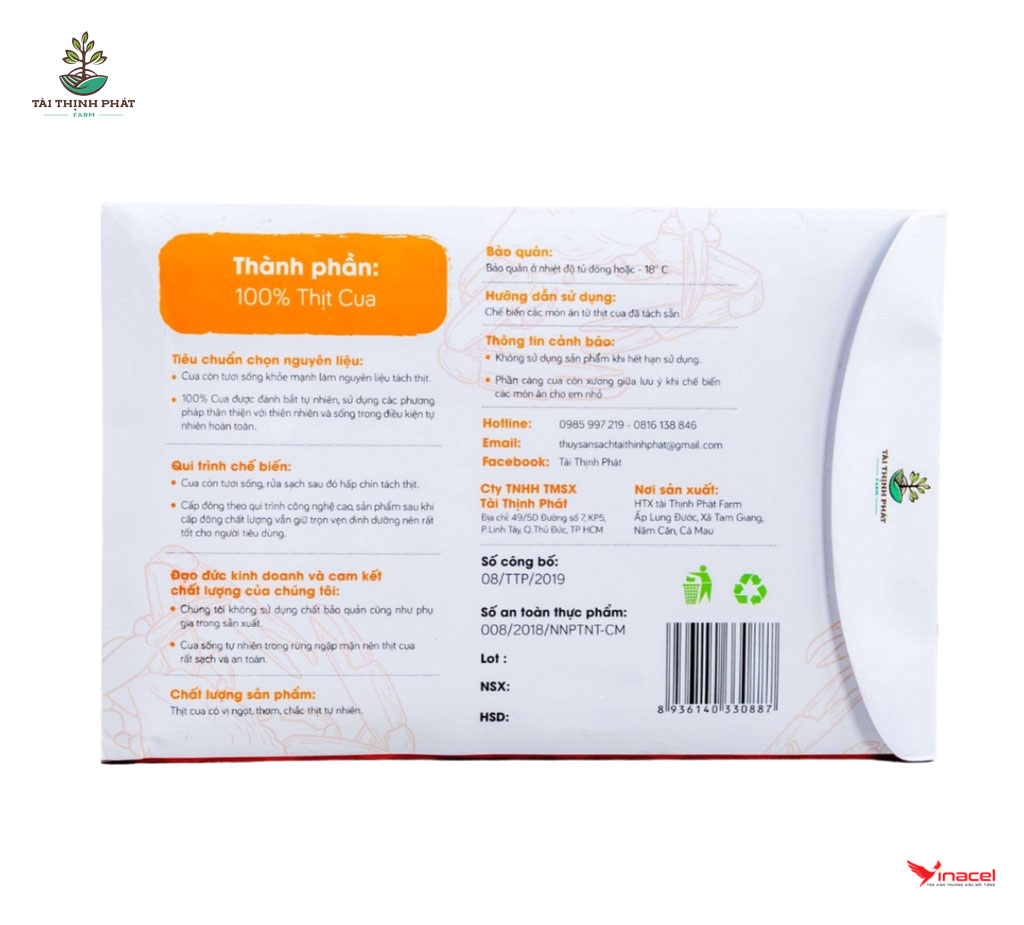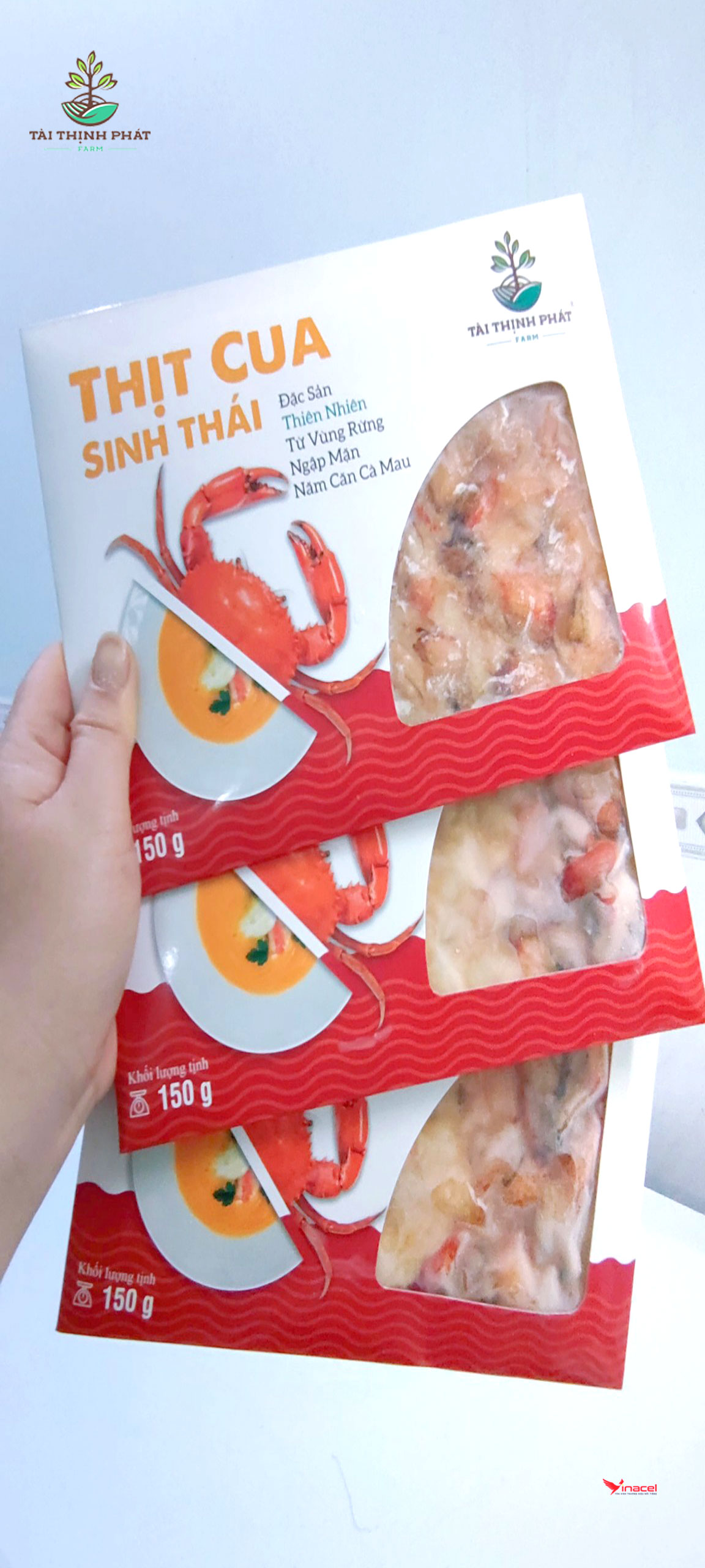 Hiểu được điều đó Hợp tác xã Tài Thịnh Phát Farm đã chế biến sản phẩm thịt Cua sinh Thái dùng tiện lợi, thịt cua được đóng gói sẳn thuận tiện để chế biến các món ăn, sản phẩm không những ngon,an toàn cho sức khỏe mà bao bì thân thiện với môi trường. Ngoài việc có thể dùng cho gia đình cũng có thể dùng làm quà biếu người thân bạn bè.