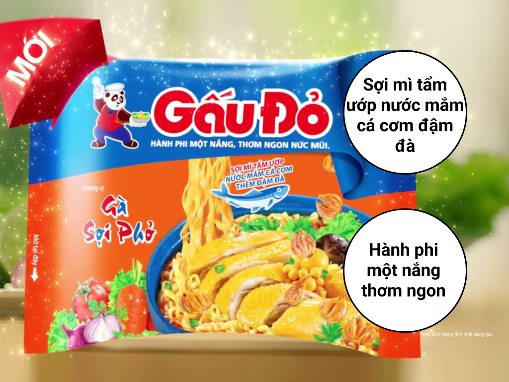 Mỗi gói mì Gấu Đỏ là đỉnh cao món ngon đặc sắc, được chế biến bởi tâm huyết của bếp trưởng Gấu Đỏ. Từ việc tỉ mỉ lựa chọn những hạt lúc mì Úc vàng ươm thượng hạng để làm nên những sợi mì mỏng mịn, giòn dai đến đến việc lựa chọn từng củ hành tươi ngon để tạo nên nước súp với Hành phi một nắng nức mũi.