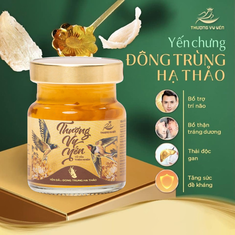 Yến sào thượng vy được kết hợp từ thành phần yến sào nguyên chất kết hợp cùng đông trùng hạ thảo thượng hạng, là sản phẩm cao cấp có giá trị dinh dưỡng cao, đặc biệt tốt cho sức khỏe người lớn tuổi hoặc những đối tượng cần được bồi bổ sức khỏe.