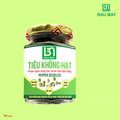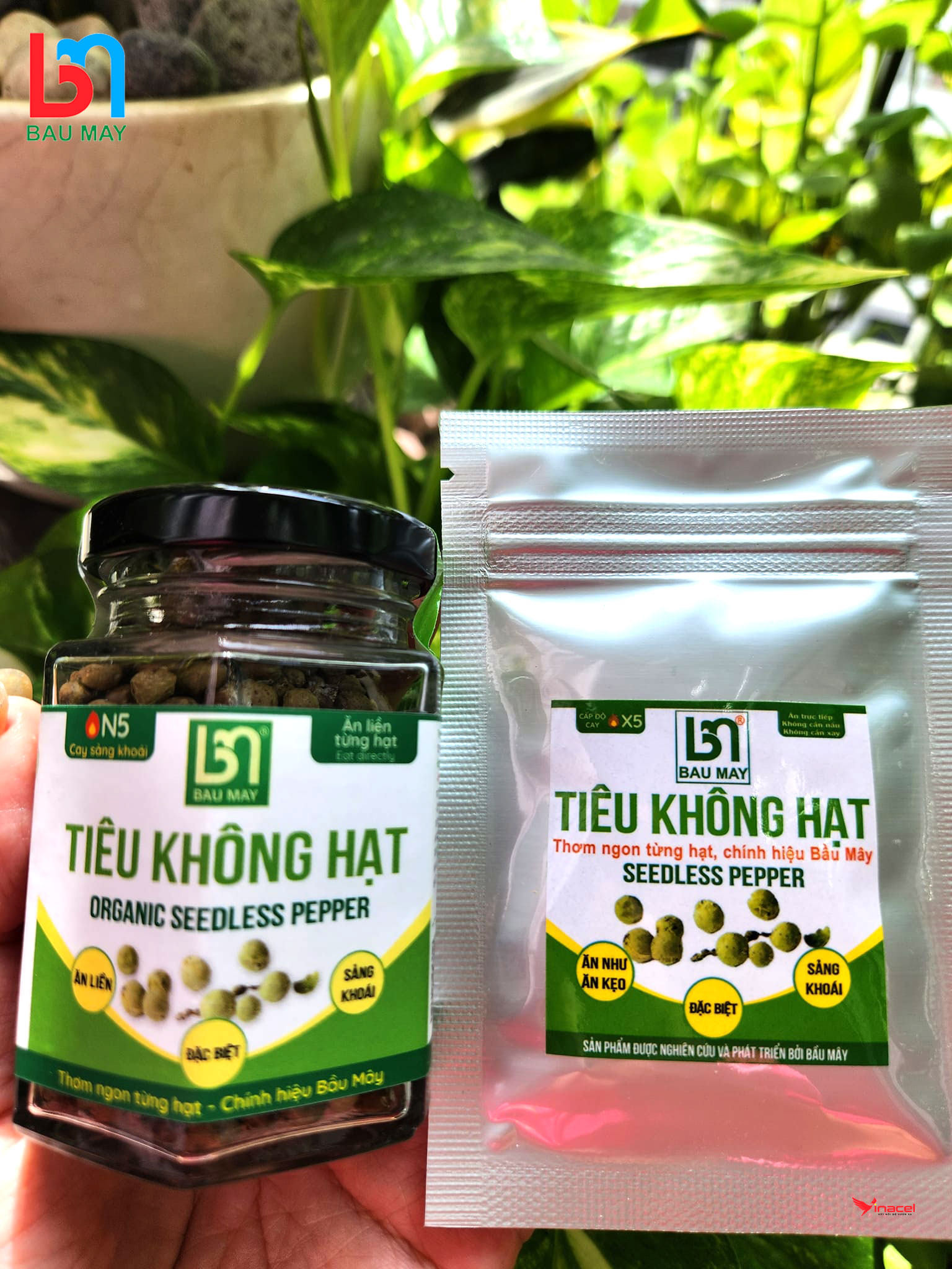 Tiêu không hạt Bầu Mây hữu cơ được sản xuất từ 100% hạt tiêu nguyên chất trồng tại vùng nguyên liệu Bầu Mây theo tiêu chuẩn hữu cơ, đảm bảo tiêu chí “Không Màu Tổng Hợp, Không Chất Bảo Quản, Không Tạp Chất”