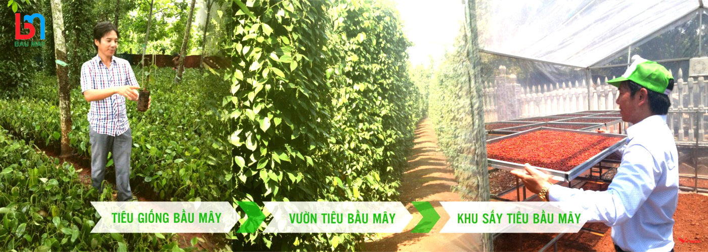• Bầu Mây là đơn vị đầu tiên và duy nhất tại Việt Nam chủ động vùng nguyên liệu, Tiêu Bầu Mây được chứng nhận Nông Nghiệp Hữu Cơ theo phương pháp hữu cơ gia truyền. Chế biến theo tiêu chuẩn an toàn thực phẩm ISO 22000:2018, chứng nhận tiêu chuẩn FDA.