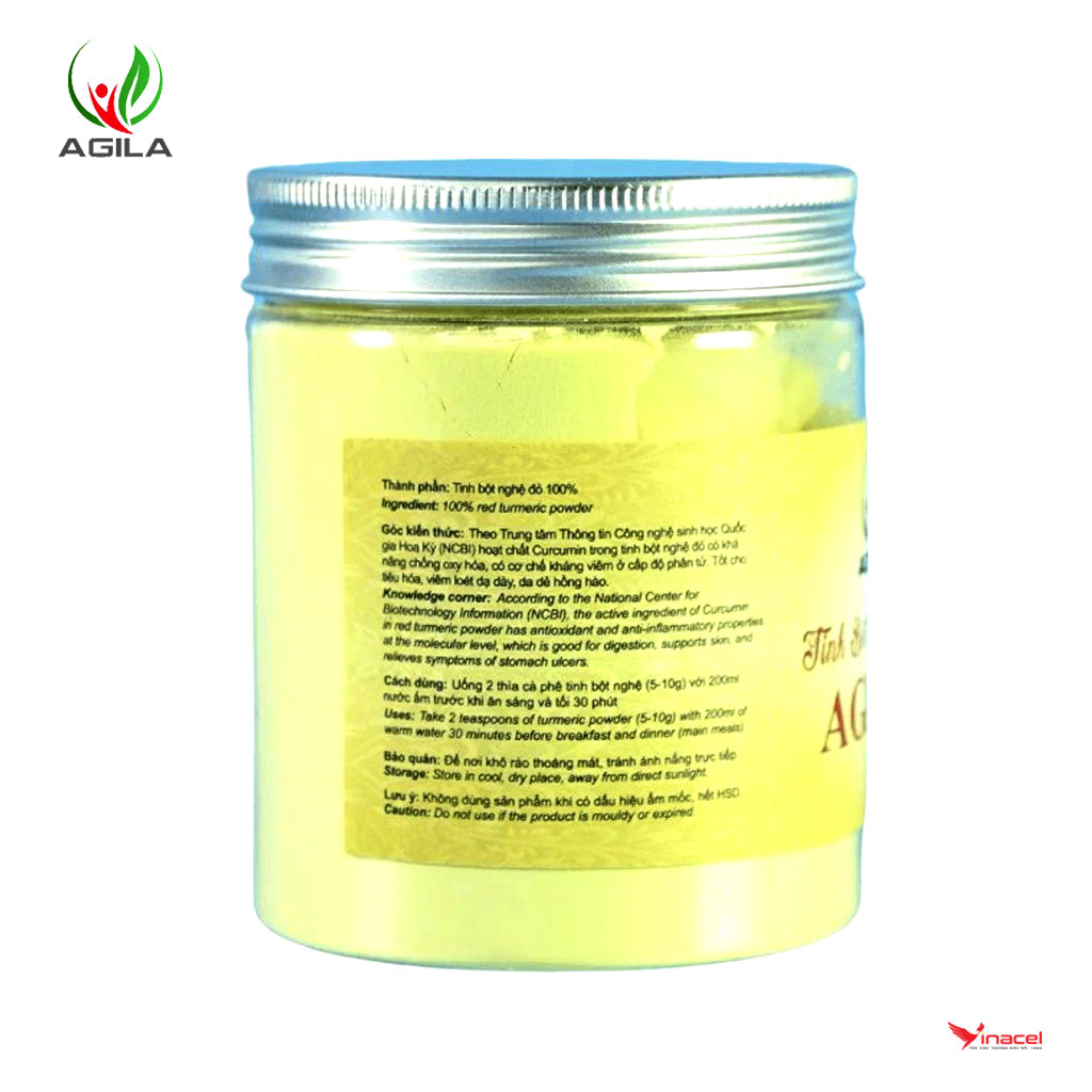 Tinh bột nghệ đỏ AGILA có chứa hàm lượng curcumin cao và nhiều dưỡng chất dồi dào. Khoa học đã chứng minh Curcumin là hoạt chất đặc biệt có trong những sản phẩm tinh bột nghệ có khả năng giải độc và bảo vệ gan, loại bỏ các cholesterol xấu, điều hòa huyết áp, giảm cân, hỗ trợ điều trị và ngăn ngừa bệnh viêm loét dạ dày, tá tràng, làm đẹp da, dưỡng da trắng hồng, giảm mụn, giảm thâm nám, tàn nhang.…