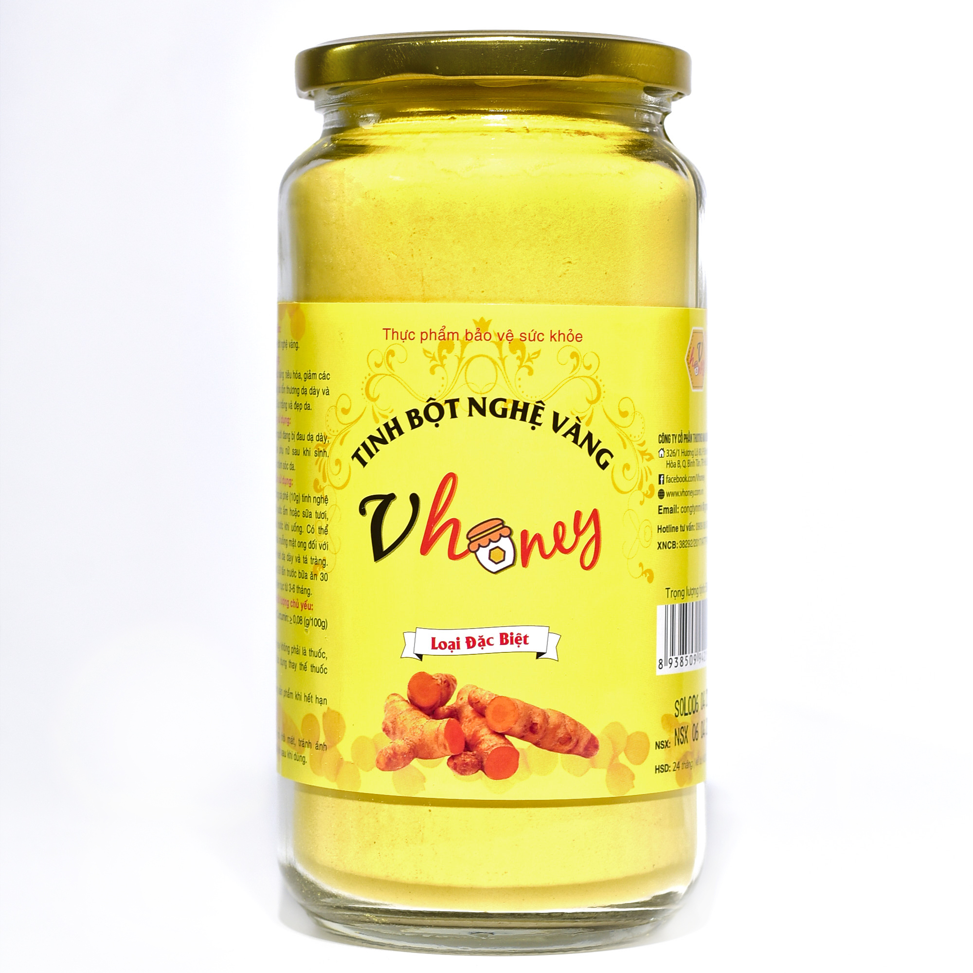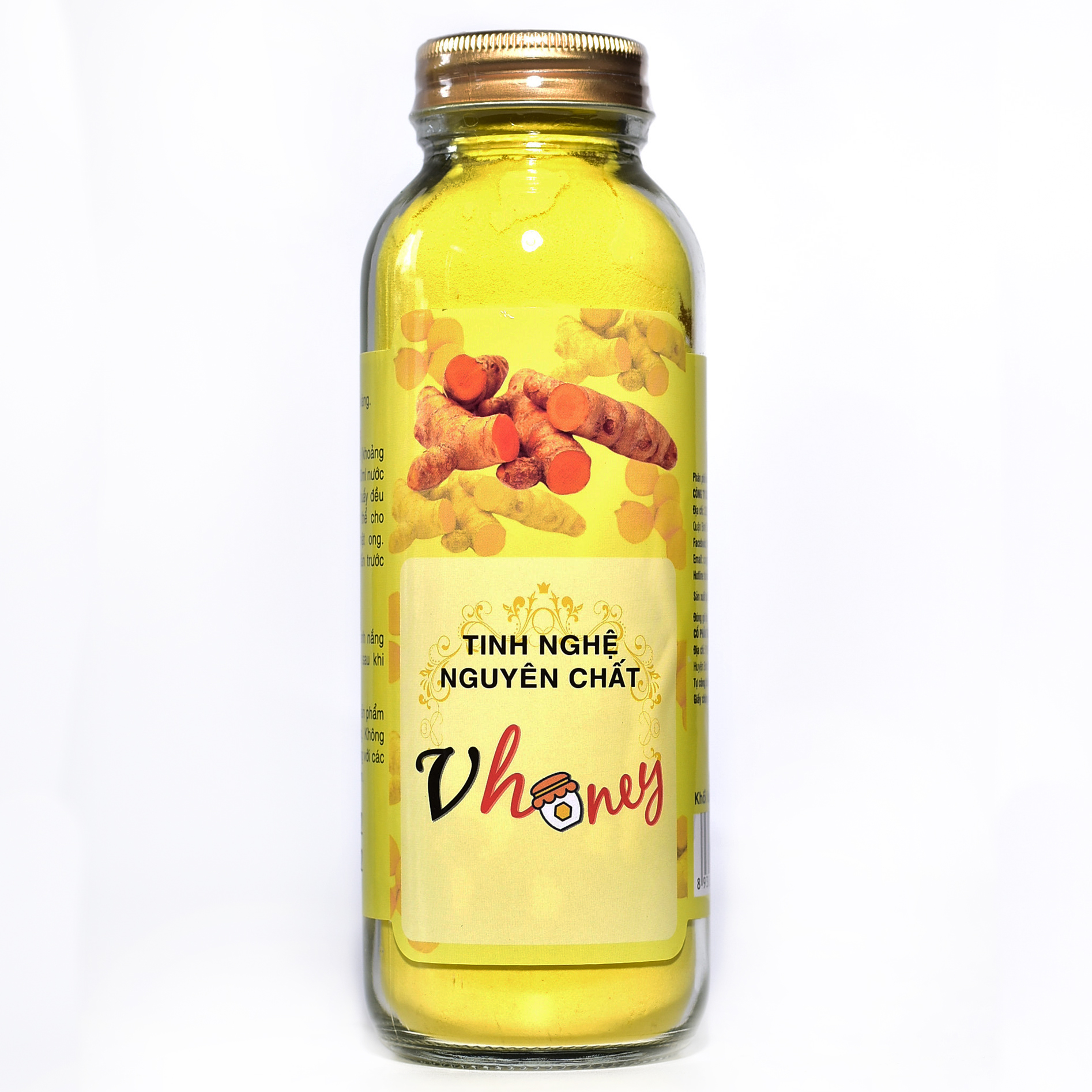 Tinh Nghệ Nguyên Chất Vhoney là 100% tinh nghệ được lấy từ nghệ vàng, không phẩm màu, không pha độn. Sản phẩm có thể sử dụng với nhiều mục đích khác nhau, đặc biệt để nâng cao sức khỏe, bảo vệ hệ tiêu hóa và làm đẹp da.