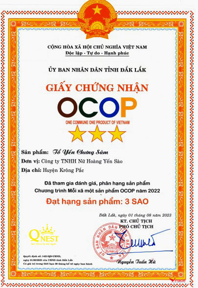 Mô tả sản phẩm Tổ Yến Chưng Sâm 25% Nữ Hoàng Yến Sào