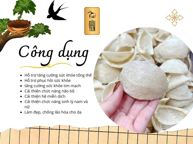 Vì thế, công dụng của tổ yến mang đến cho sức khỏe người dùng cũng trọn vẹn hơn, cụ thể như sau: