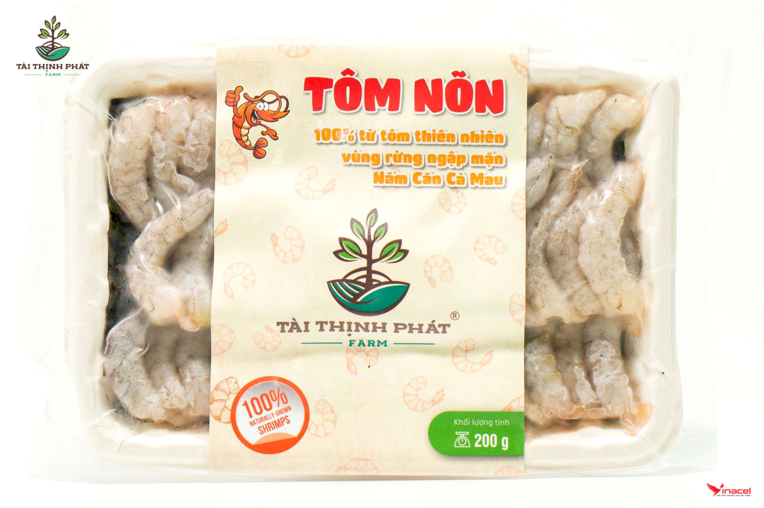 Tôm nõn sinh thái Tài Thịnh Phát Farm được lựa chọn từ tôm tươi do Hợp tác xã nuôi, tôm tươi chất lượng tốt, đem về rửa sạch, bóc bỏ hết đầu và vỏ, loại bỏ phần bẩn trên lưng tôm, sau đó đóng gói đảm bảo sự tươi, ngon, đảm bảo an toàn về chất lượng và vệ sinh an toàn thực phẩm. Tôm được đóng gói hút chân không dưới dạng 200 gram thuận lợi cho quá trình người tiêu dùng sử dụng và bảo quản.