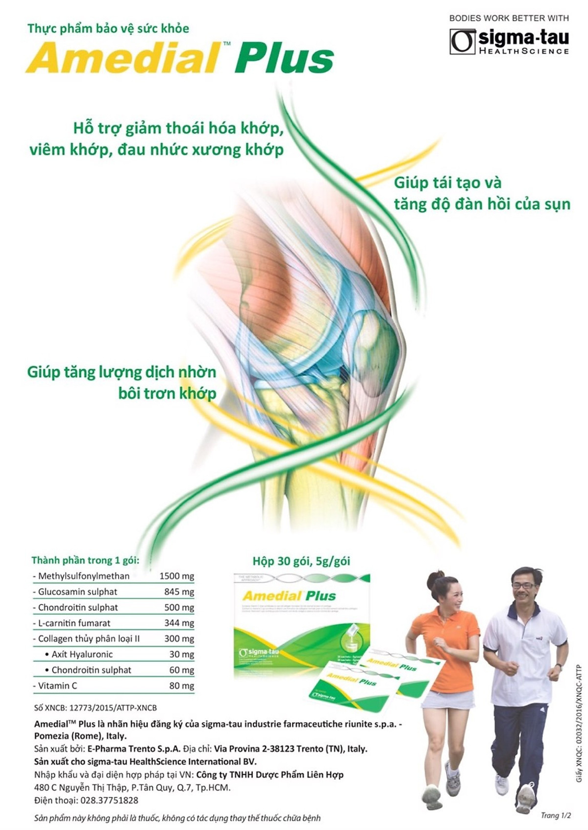 Viêm khớp, thoái hóa khớp là nỗi ám ảnh của rất nhiều người Việt. Nếu ai là “khổ chủ”, hẳn đã và đang trải qua những cảm giác đau nhức, sưng đỏ, căng cứng tại các vùng xương khớp bị tổn thương. Đây chính là lý do thôi thúc các nhà khoa học Italia điều chế thành công Amedial™ Plus, với công dụng hỗ trợ điều trị và làm giảm các triệu chứng do bệnh lý về khớp gây ra.
