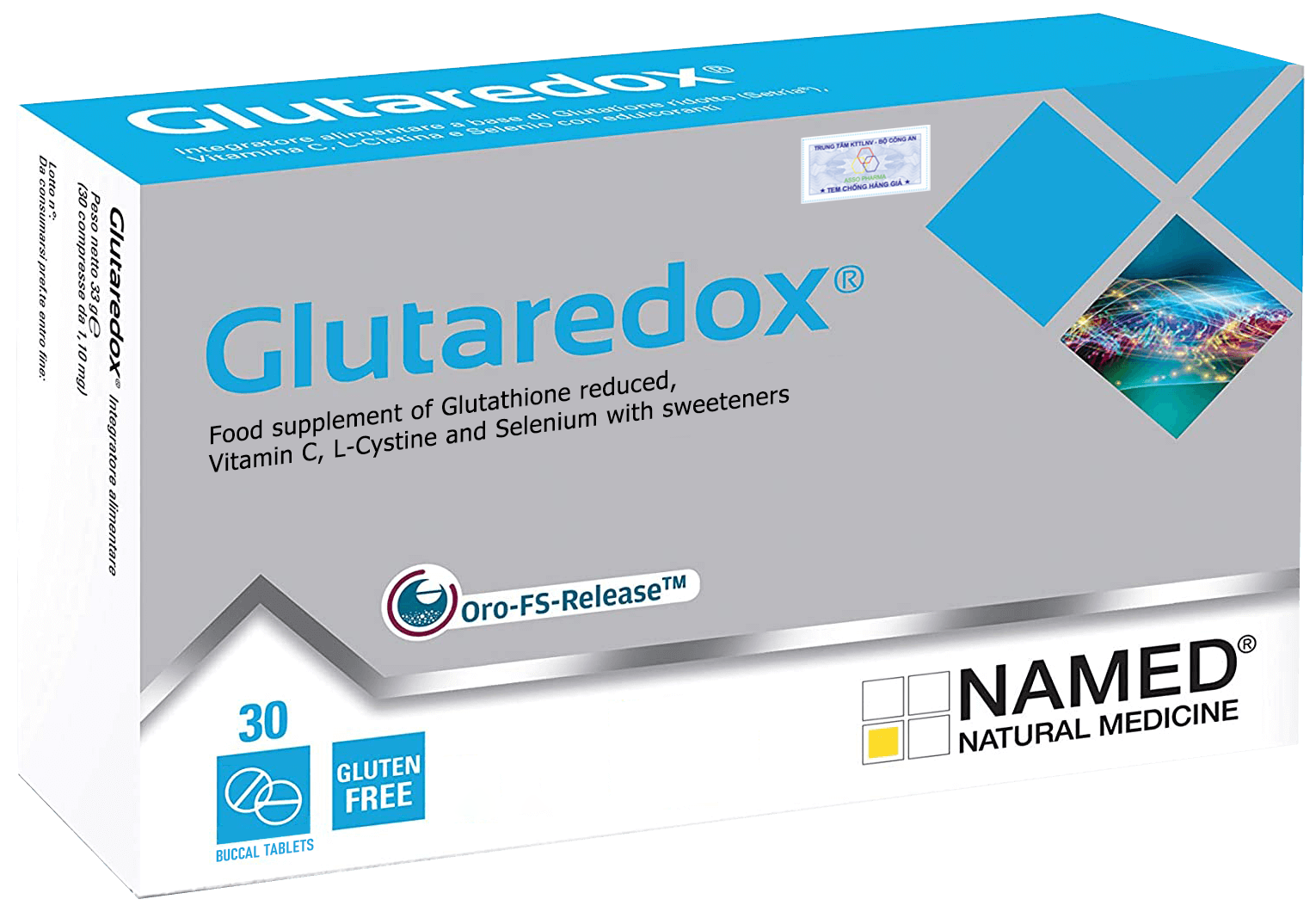 GLUTAREDOX® là một chất bổ sung đột phá có dạng viên nén đặc biệt được sản xuất theo công nghệ phóng thích nhanh-chậm tại miệng ORO-FS Release (Fast /Slow Release), một công thức được cấp bằng sáng chế, chứa hàm lượng Glutathione dạng khử từ Setria, Vitamin C, Selen và L-cysteine.