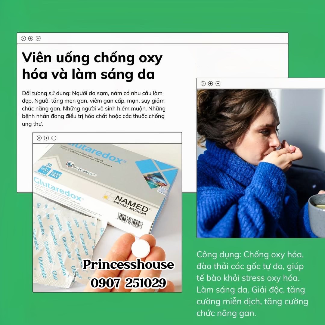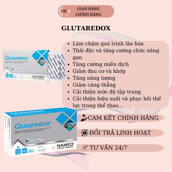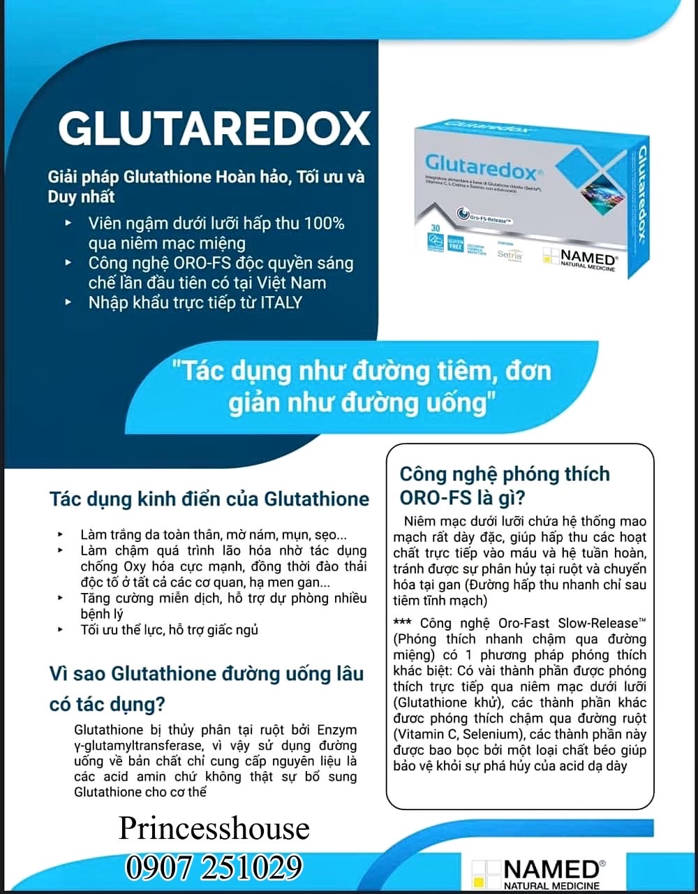 Glutaredox® là một chất bổ sung đột phá có dạng viên nén đặc biệt được sản xuất theo công nghệ phóng thích nhanh-chậm tại miệng ORO-FS Release (Fast /Slow Re... Glutathione, là một chất chống oxy hóa mạnh với tác dụng chống tạo hắc tố, gần đây đã trở thành “phân tử làm sáng da toàn thân” phổ biến nhất.
