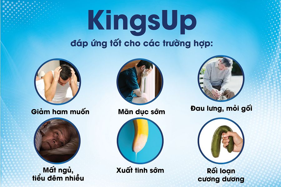 • KingsUp Thái Minh trong tay thì không còn lo lắng về rối loạn cương dương nữa, cải thiện từ xuất tinh sớm, giảm ham muốn, không cương cứng được. Tạo mối quan hệ vợ chồng, giường chiếu sung mãn, gia đình hạnh phúc, sức khỏe thể chất, tinh thần đều lên ngôi, chất lượng sống được nâng cấp.