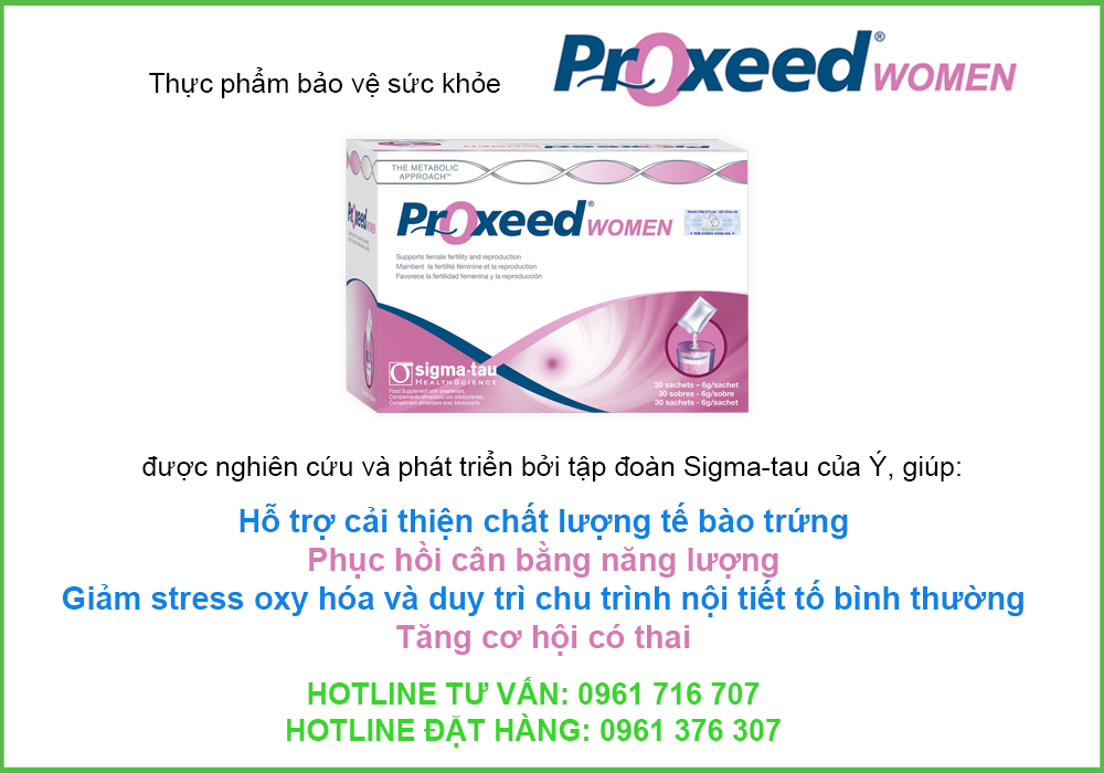 Thực phẩm bảo vệ sức khỏe Proxeed® Women hỗ trợ cải thiện chất lượng trứng, phục hồi cân bằng năng lượng, giảm stress oxy hóa và duy trì chu trình nội tiết tố bình thường, làm tăng cơ hội có thai.