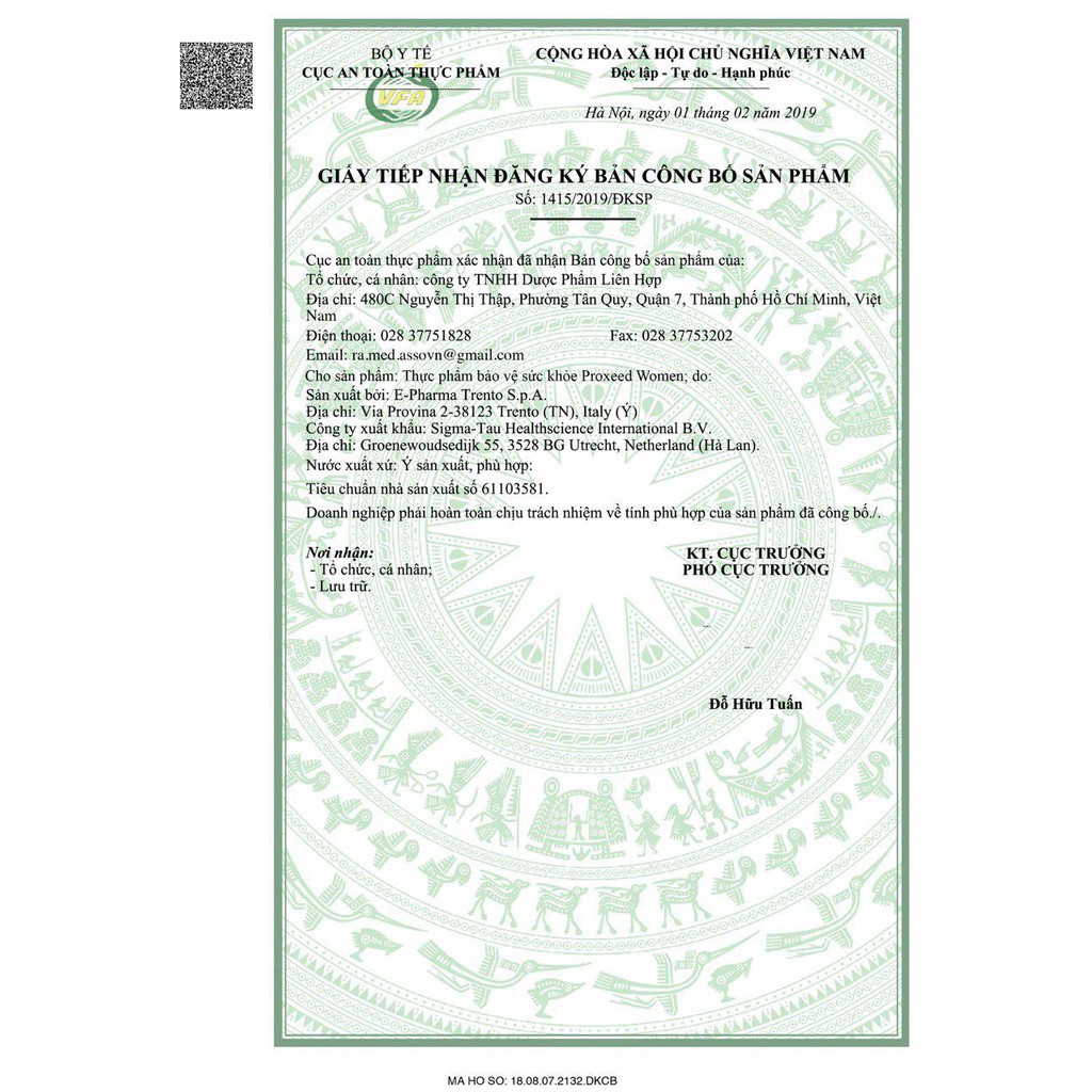 Thực phẩm bảo vệ sức khỏe Proxeed® Women được sản xuất theo tiêu chuẩn GMP và được kiểm nghiệm theo quy chế (EC) của Châu Âu (EU).