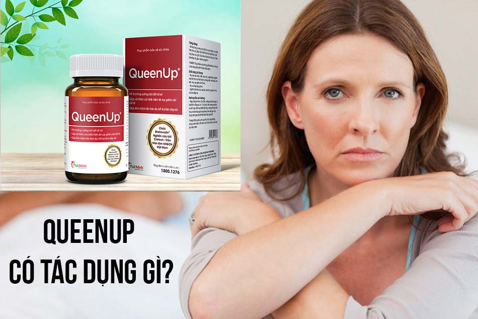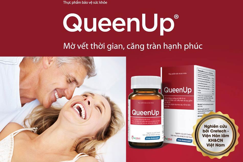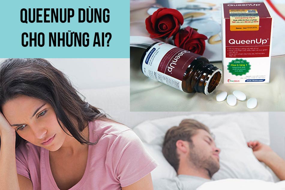 QueenUp là sản phẩm được nghiên cứu và sản xuất dành riêng cho nữ giới. Sản phẩm thích hợp dùng cho phụ nữ tiền mãn kinh, mãn kinh, người bị suy giảm nội tiết tố nữ với biểu hiện: chóng mặt, mất ngủ, cơn bốc hỏa, suy giảm sinh lý nữ. Phụ nữ sau sinh bị rối loạn nội tiết tố với các biểu hiện: khô hạn, giảm ham muốn. Phụ nữ đau bụng kinh. Người bị lão hóa da, sạm da, da khô, người có nhu cầu làm đẹp da.