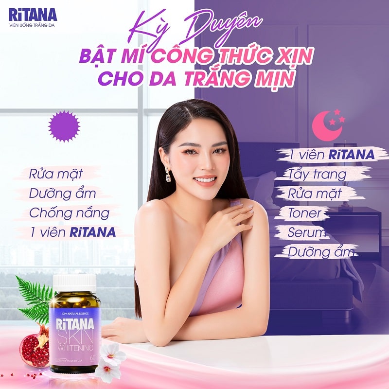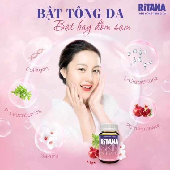 Sạm nám và lão hóa da là nỗi lo chung của chị em sau độ tuổi 30, có nguồn gốc ẩn sâu bên trong cơ thể, các giải pháp từ bên ngoài chỉ mang lại hiệu quả nhất thời, ẩn chứa nhiều nguy cơ làm mỏng da, tái sạm nám với hậu quả nghiêm trọng hơn. Viên uống hỗ trợ trắng da Ritana được chiết xuất từ các tinh chất quý đến từ thiên nhiên, hỗ trợ dưỡng trắng da an toàn. Được áp dụng công nghệ của Mỹ, kết hợp cùng các tinh chất thiên nhiên dưỡng trắng da từ sâu bên trong.