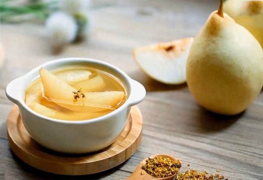 Cắt lấy phần ruột trắng bên trong của quả lê thành các hình vuông nhỏ, trộn lẫn một lượng đường phèn thích hợp. Sau đó đem hấp hoặc đun cách thủy.