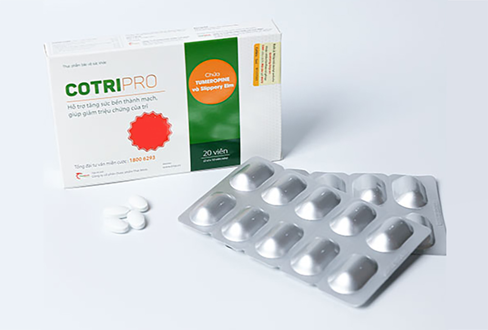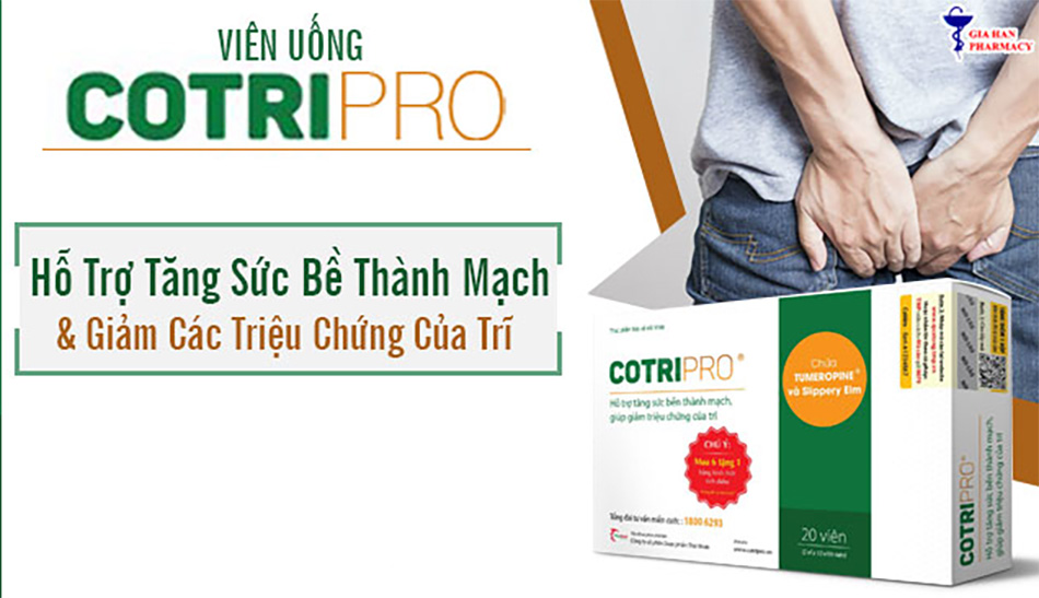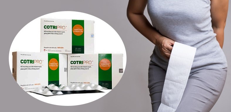 - Việc sử dụng viên uống Cotripro để hỗ trợ trị bệnh trĩ được xem là phương pháp hiệu quả mà không gây đau đớn, sản phẩm sẽ thẩm thấu và cải thiện tình trạng đau, sưng búi trĩ từ trong ra ngoài, giảm bớt các triệu chứng hình thành ở hậu môn.
