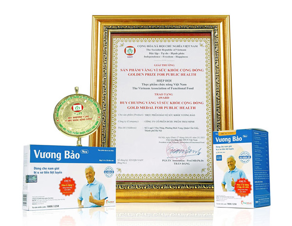 Vương Bảo đã và đang đồng hành với hàng triệu nam giới trung và cao niên bị tiểu khó, tiểu đêm nhiều, tiểu không hết,…do phì đại tiền liệt tuyến tại Việt Nam và nhiều Việt kiều ở nước ngoài. Trong 4/2023, Vương Bảo đã đáp ứng hàng loạt tiêu chí khắt khe và vượt qua hàng ngàn hồ sơ sản phẩm của các Công ty khác, xuất sắc nhận về 2 giải thưởng danh giá: