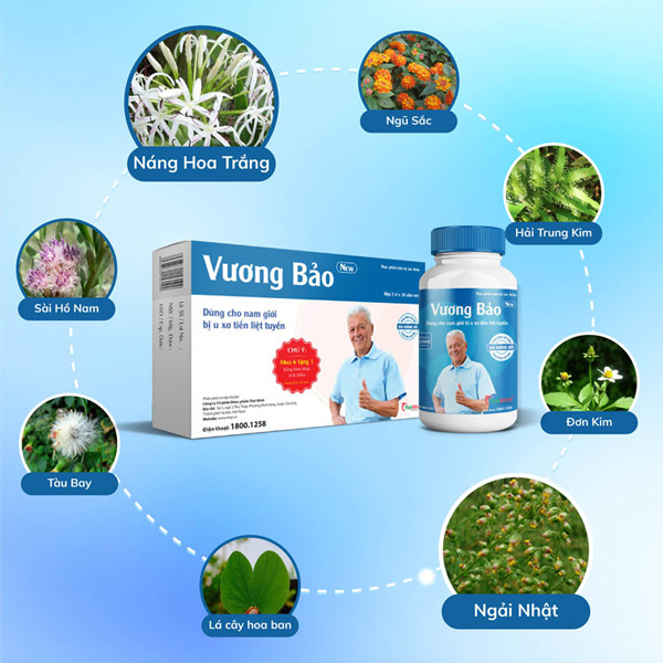 Viên uống Vương bảo là liệu pháp đặc thù cho tuyến tiền liệt nam giới lớn tuổi, giải quyết tối ưu từ việc ngăn ngừa tăng kích thước quá mức của tuyến tiền liệt, chống u xơ hình thành và phát triển trở lại cùng với hỗ trợ nhanh chóng các tình trạng tiểu gắt, tiểu buốt, khó tiểu, tiểu không hết, tiểu nhiều lần.
