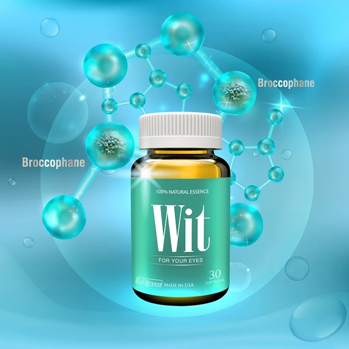 Mắt luôn bị tấn công và dần suy yếu bởi các yếu tố: tuổi tác, môi trường ô nhiễm, tia cực tím, ánh sáng nguy hại từ các loại màn hình... Hậu quả làm cho 2 bộ phận cực kỳ quan trọng của mắt là võng mạc và thủy tinh thể bị hư tổn, dẫn đến mắt mờ, mỏi, khô, nhức, suy giảm thị lực,... Sản phẩm Wit chứa tinh chất từ Broccophane thiên nhiên giúp hỗ trợ tăng Thioredoxin, bảo vệ tế bào biểu mô sắc tố võng mạc và thủy tinh thể.