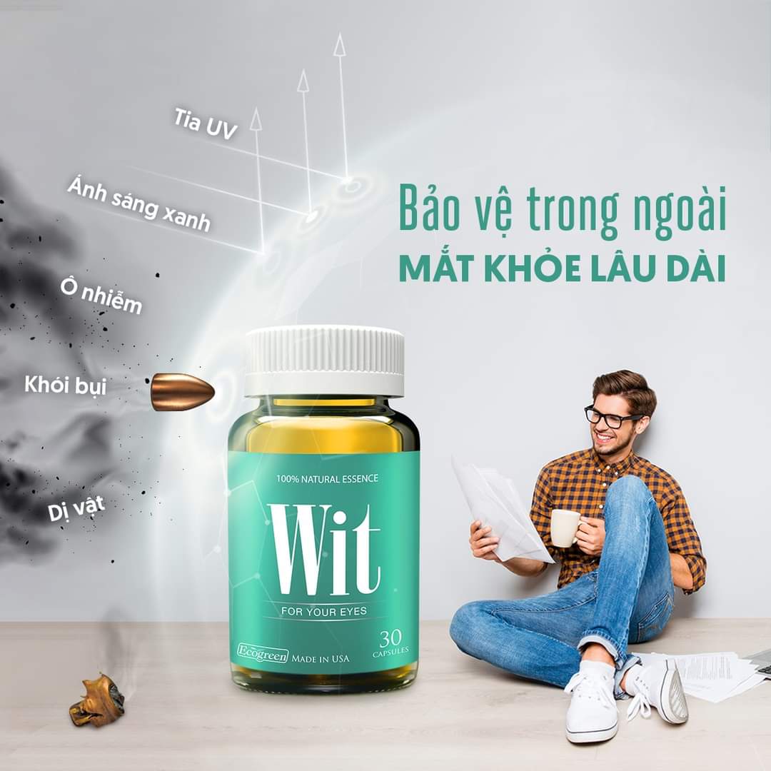 Thực phẩm chức năng WIT thuộc thương hiệu Ecogreen chính là xu hướng mới trong việc chăm sóc mắt, là thực phẩm bổ mắt được các chuyên gia khuyến cáo sử dụng vì tính an toàn và hiệu quả. Hỗ trợ điều tiết mắt, cải thiện các triệu chứng mờ, mỏi, khô, nhức mắt, chảy nước mắt sống.