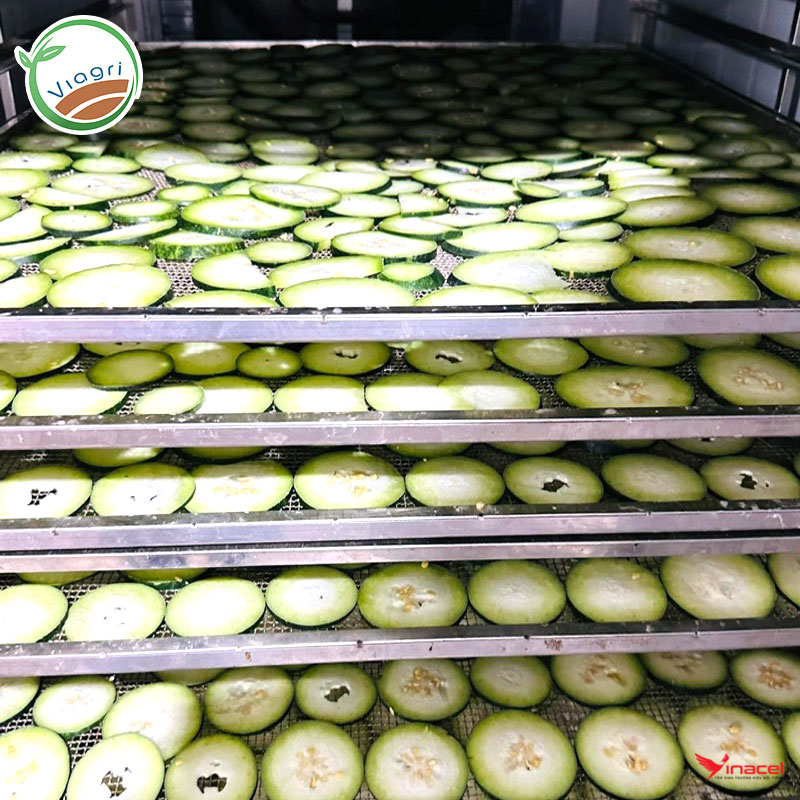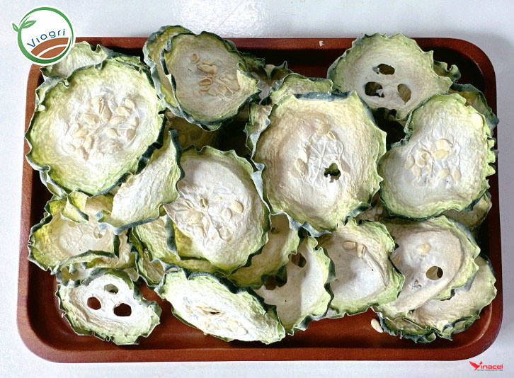• Bí xanh tươi khi chế biến thành bí khô rất hao và mất nhiều công đoạn xử lý. Quá trình làm khô được VIAGRI sử dụng máy sấy lạnh để đảm bảo dưỡng chất và VSATTP.