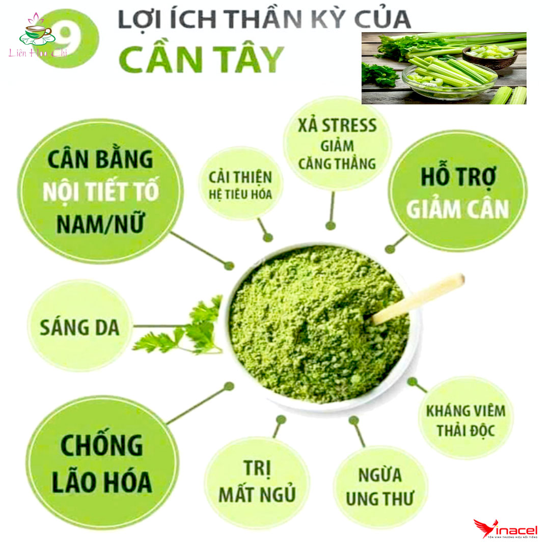 Để làm ra một ly nước ép cần tây thường qua nhiều công đoạn ép, lọc và mất thời gian. Với những người phụ nữ hiện đại, đôi khi không có nhiều thời gian để thực hiện thức uống này, vì vậy sử dụng bột cần tây đang được rất nhiều chị em tin dùng.