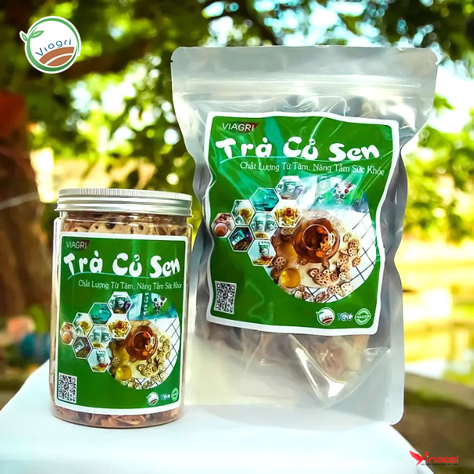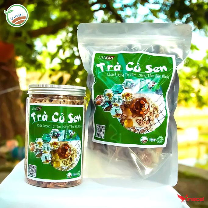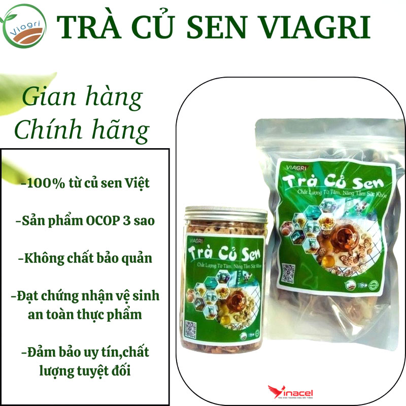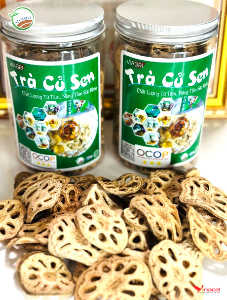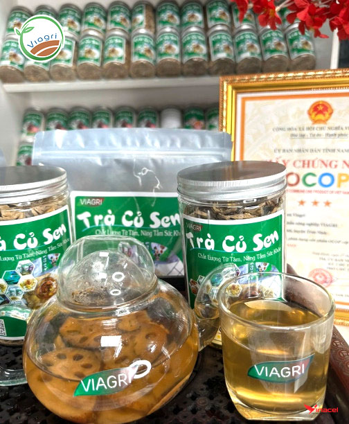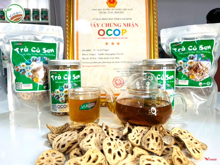 Trà Củ Sen ViagrI được làm từ 100% củ sen tươi đạt tiêu chuẩn an toàn thực phẩm sạch HACCP, là một trong các sản phẩm OCOP tiêu biểu của Tỉnh Nam Định.