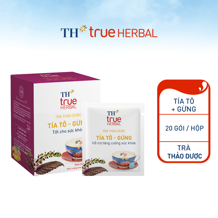 TH True Herbal Trà Thảo Dược Tía Tô – Gừng được biết đến khá phổ biến với công dụng hỗ trợ giúp làm ấm cơ thể, thúc đẩy tiêu hóa, cải thiện tình trạng khó tiêu, giảm cảm lạnh, ho, sốt.