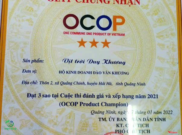 Với chất lượng thơm ngon, giàu chất dinh dưỡng, năm 2017 sản phẩm vịt trời Duy Khương có mặt hầu hết ở các sự kiện hội chợ giới thiệu sản phẩm OCOP của tỉnh Quảng Ninh và đạt tiêu chuẩn 3 sao được người tiêu dùng ưa chuộng.