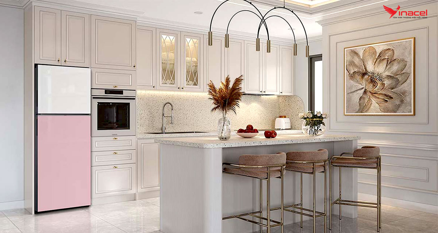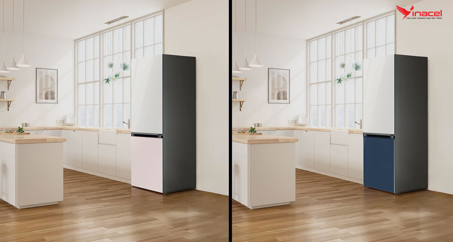 Tủ lạnh Samsung Bespoke với 5 màu sắc thời thượng (Trắng Thạch Anh, Xanh Navy, Hồng Pha Lê, Nâu Ánh Than, Nâu Be) cùng 2 chất liệu cao cấp (Mặt gương/ Mặt gốm) cho bạn tự do lựa chọn theo sở thích và cá tính riêng, đồng thời tạo điểm nhấn thú vị cho không gian bếp.