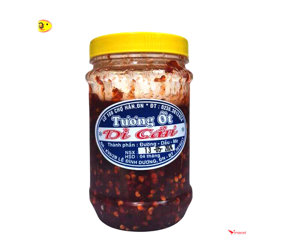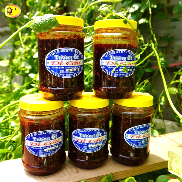 Nếu tìm mua đặc sản Đà Nẵng bạn không nên bỏ qua tương ớt Dì Cẩn. Tương ớt là một món chấm không thể thiếu khi bạn dùng chả bò hoặc mực khô,... còn nếu bạn ăn tương ớt cùng mì quảng hoặc các loại bún bò, bún riêu, bún chả,... thì sẽ vô cùng hấp dẫn.