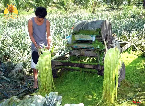 • Tách sợi: Sau khi đã được ép khô nước, người ta sẽ tiến hành tách xơ sợi và bã lá. Công đoạn này có thể thực hiện bằng máy hoặc thủ công.