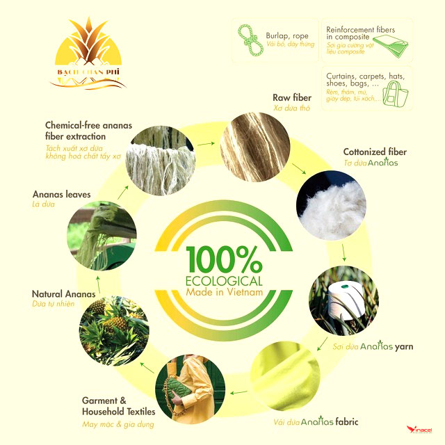 Vì vậy, việc phát triển ngành công nghiệp sản xuất vải sợi dứa đã góp phần vào việc giảm ô nhiễm đất, nước, giảm lượng tro bụi thải ra môi trường khi đốt nương, tiêu hủy lá dứa.