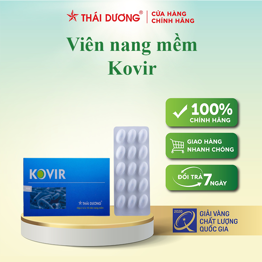 Viên uống Kovir Thái Dương có công dụng trong việc hỗ trợ điều trị các bệnh như đau mắt đỏ, sởi, thủy đậu, sốt phát ban, cảm cúm, ho, viêm họng; Người béo phì, mỡ máu cao dẫn đến xơ vữa động mạch, huyết áp cao; Người đầy bụng, khó tiêu, rối loạn tiêu hóa, phụ nữ có thai…một cách nhanh chóng và hiệu quả.