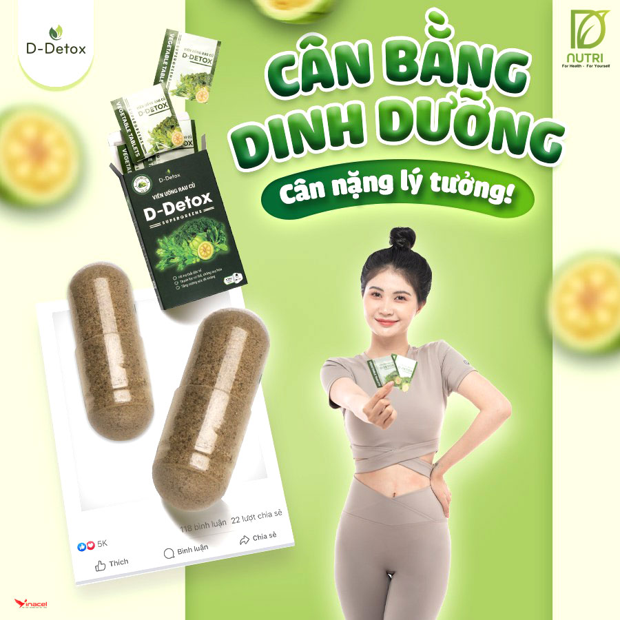 Viên uống rau củ D-Detox là sản phẩm thuộc hệ sinh thái ”Sản phẩm xanh” của nhà D-Nutri. Sản phẩm này bổ sung chất xơ hiệu quả, giúp tăng cường chức năng tiêu hóa, giải độc cơ thể, kiểm soát cân nặng và tăng cường sức khỏe. Tuy nhiên, để đảm bảo hiệu quả và tránh tác dụng phụ, người dùng cần sử dụng đúng liều lượng và bảo quản sản phẩm đúng cách.