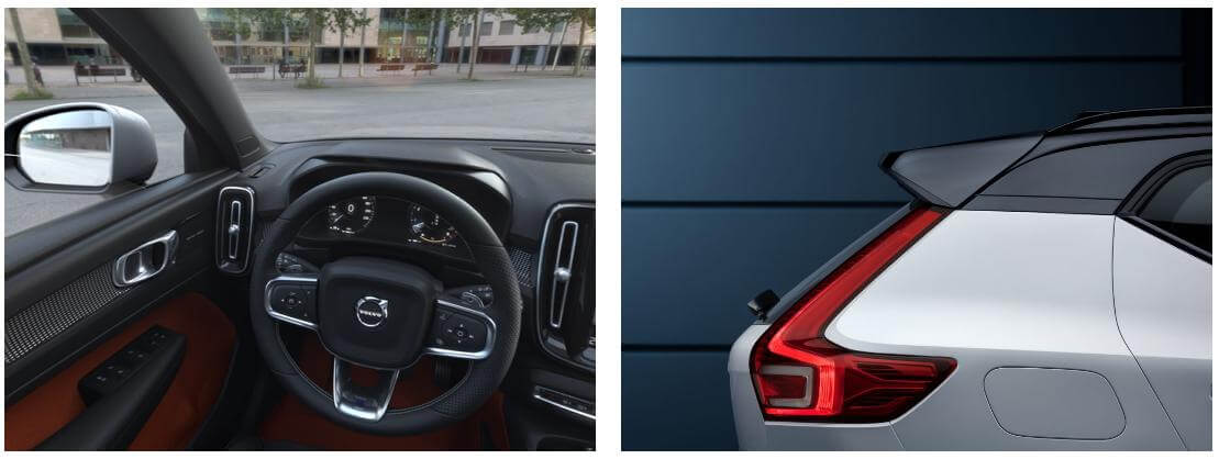 Trên phiên bản Ultimate (được trang bị động cơ mild hybrid), Volvo XC40 sẽ sở hữu những khác biệt so với các phiên bản tiêu chuẩn về mặt ngoại hình, như: mâm xe thiết kế dày dặn và ấn tượng hơn, hay ống xả sau đuôi được giấu kỹ để đem lại ngoại hình tiệm cận những mẫu xe EV.