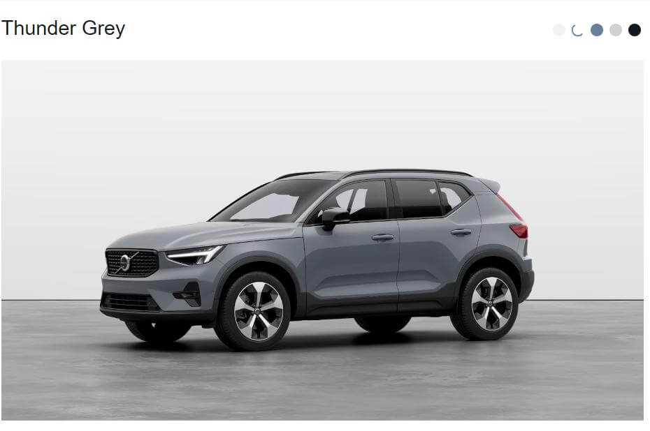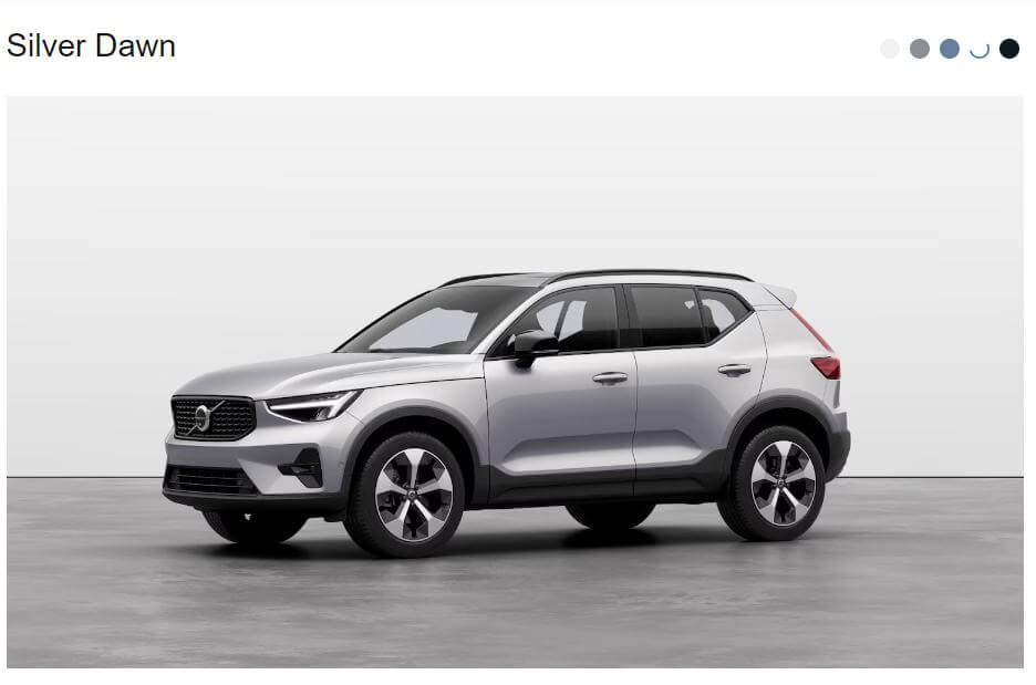 Volvo XC 40 được định hình là dòng xe nhỏ gọn phù hợp với điều kiện đường đô thị. Màu sắc của Volvo XC 40 2023 bao gồm: Bạc Silver Dawn, Xanh Fjord Blue, Xám Thunder Grey, Đen Black Stone, Trắng Crystal White Pearly