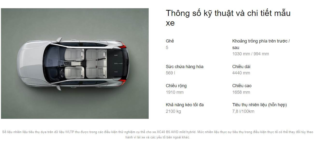 Volvo XC40 nỗi tiếng là mẫu xe có thiết kế gọn gàng, dễ luồng lách trong những cung đường nhỏ. Chính vì thế, Volvo XC40 có kích thước tổng thể là: 4.440x 1.910 x 1.658mm. Mặc dù có kích thước khả nhỏ gọn nhưng chiều dài cơ sở của xe lại lên đến 2.702mm. Do đó bạn cũng có thể hoàn toàn yên tâm khi đi trên những chặn đường dài.