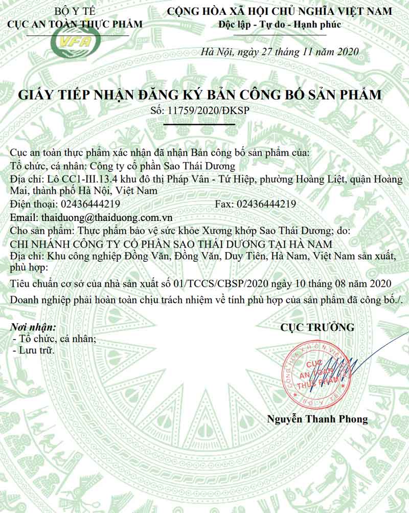 “Xương khớp Sao Thái Dương thật sự hiệu quả, đến nay tôi đã dùng được 2 tháng, tình trang đau vai gáy đã giảm rõ rệt. Sản phẩm này rất đáng tin cậy và sẽ giới thiệu cho người sử dụng”.