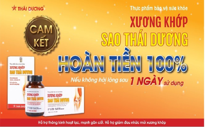 Công ty Cổ phần Sao Thái Dương triển khai chương trình cam kết hoàn tiền cho khách hàng sử dụng sản phẩm viên uống xương khớp Sao Thái Dương nếu sau 1 ngày sử dụng thấy không hài lòng.