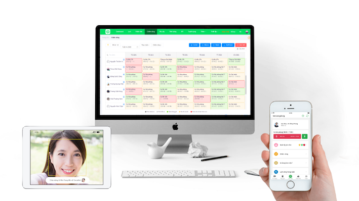 Ứng dụng nhận diện khuôn mặt sử dụng công nghệ camera AI, xác định danh tính và ghi nhận thời gian ra/vào của nhân viên. Khi có sự trùng khớp, hệ thống sẽ ghi nhận chấm công.